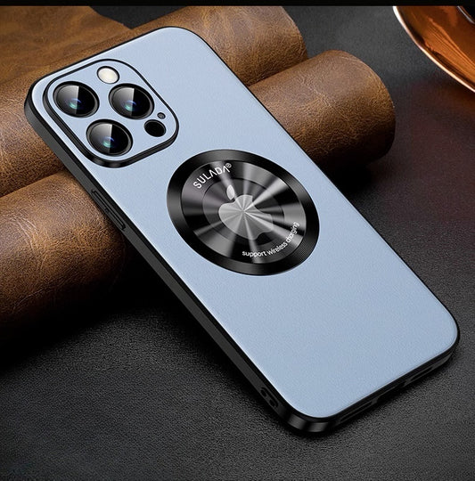 Калъф с магнитна засмукваща кутия от естествена кожа с метална рамка против падане за iPhone 12-15