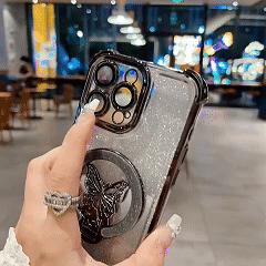 Butterfly Glitter Stand Magnetic Phone Case For iPhone - Four Corners Airbag Drop Protection
