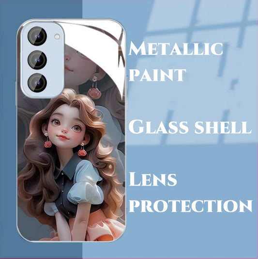 Creative three-dimensional curly hair girl all-inclusive glass phone case
