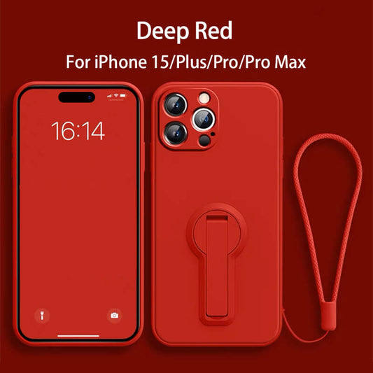 Folding Bracket Liquid Silicone Phone Case For iPhone
