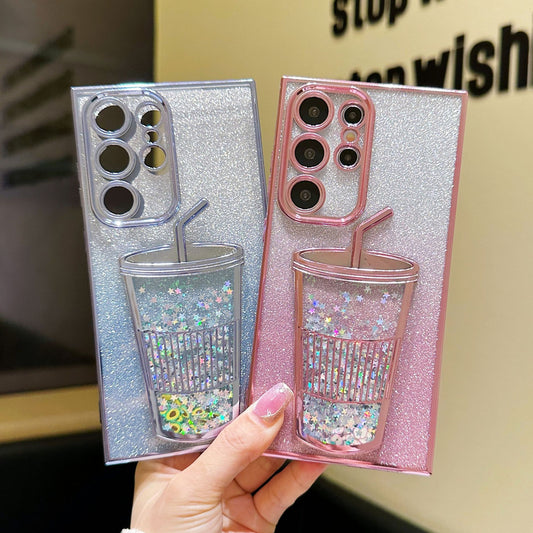 Gradient electroplating quicksand cup soft cover mobile phone case