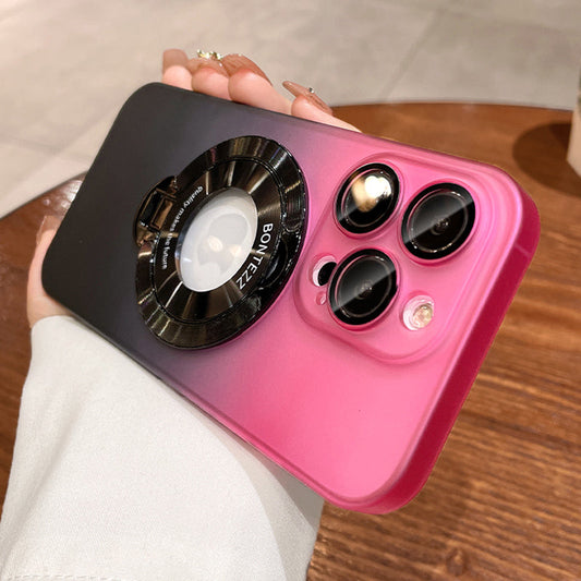 Gradient coffee large hole IMD feather yarn bracket mobile phone case