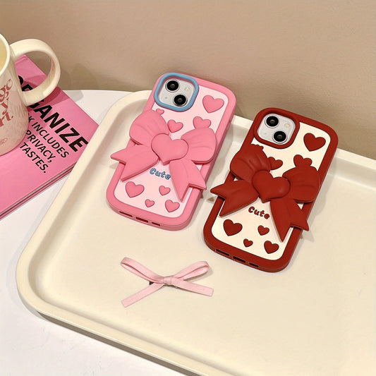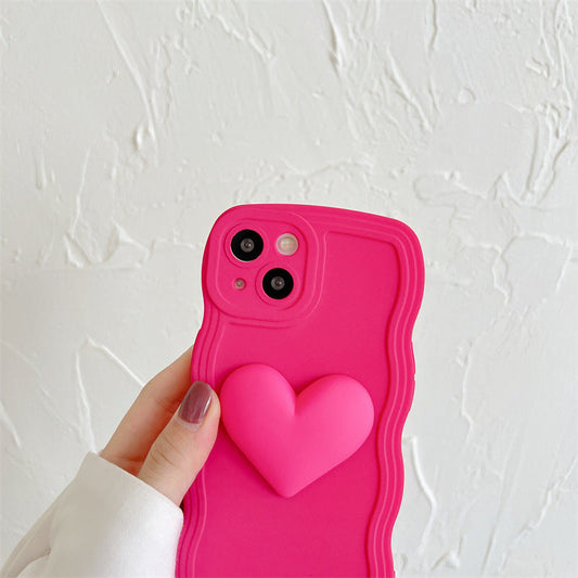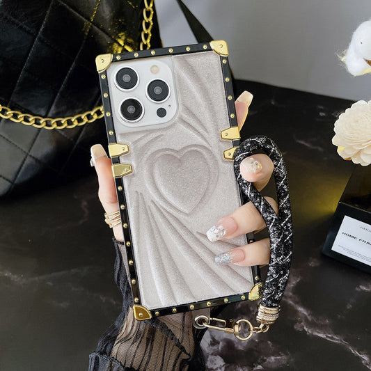 3D Velvet Heart Punk Rivet Phone Case With Lanyard For iPhone