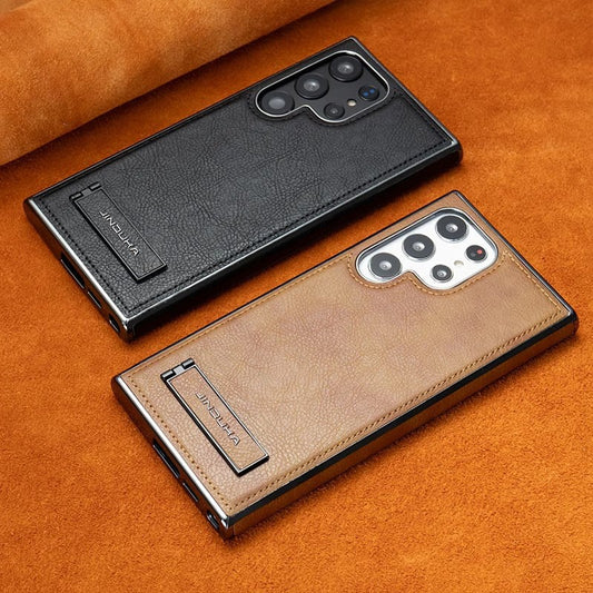 Luxury business Genuine Leather magnetic Kickstand phone case for samsung