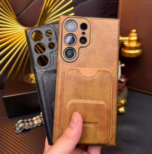 Retro Anti-fingerprint Card Leather Holder Case For Samsung