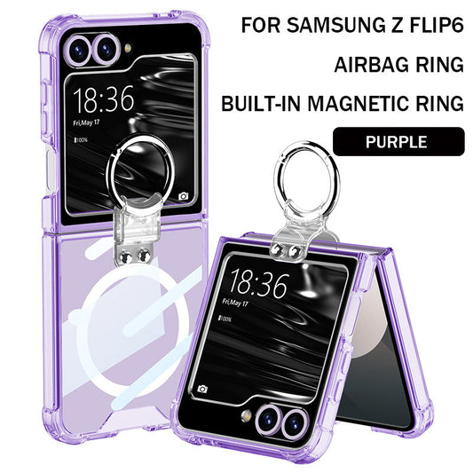 Suitable For Samsung ZFlip/4/5/6 MagSafe Magnetic Transparent Ring Airbag Phone Case