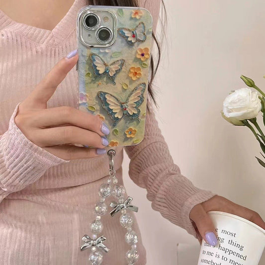 Dots Drill Oil Painting Flower Butterfly Phone Case for iPhone 15