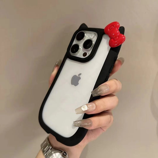 Cute 3D Cat Ear Apple Bowknot Phone Case