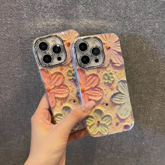 Blu-ray Diamond-studded Colorful Flower Phone Case For iPhone 15 Series