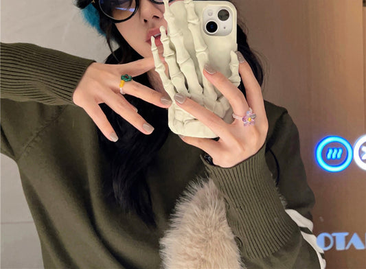 3D Velvet Heart Punk Rivet Phone Case With Lanyard For iPhone