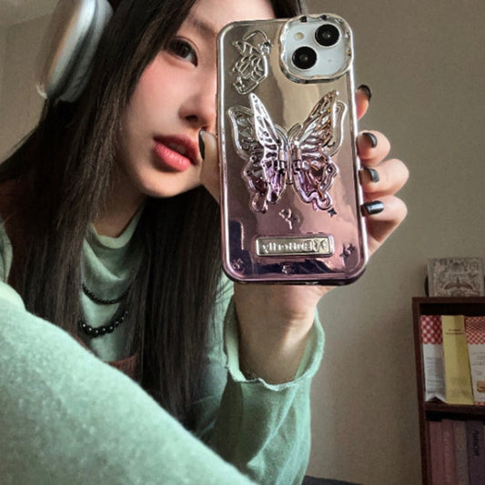 Gradient 3D Electroplated Butterfly Stand Soft Phone Case for iPhone