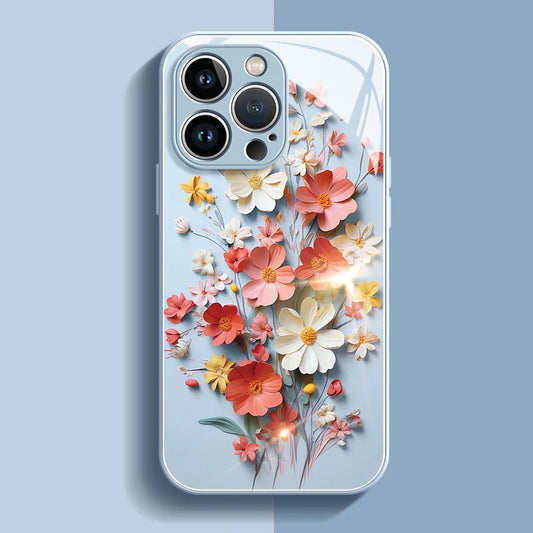 Painted Flower Glass Hard Case for iPhone