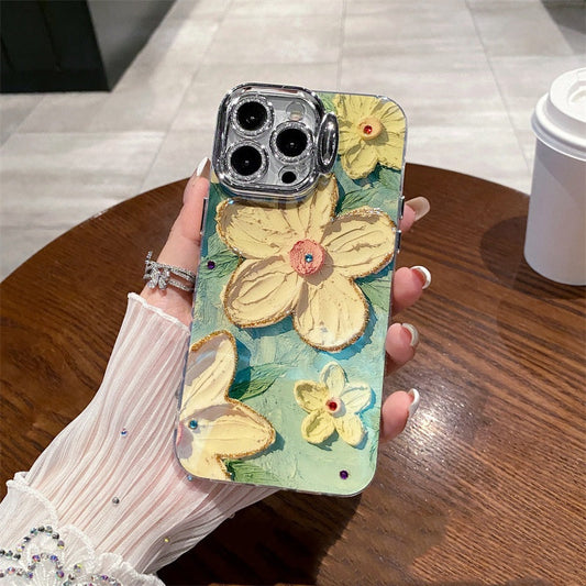 New Chinese style oil paint flower anti-fall mobile phone case