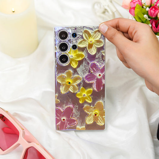 Retro Gem-Encrusted Flower Art Phone Case - Samsung