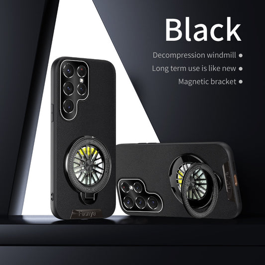 Luxurious Leather Texture Decompression Gyro Holder Case For Samsung