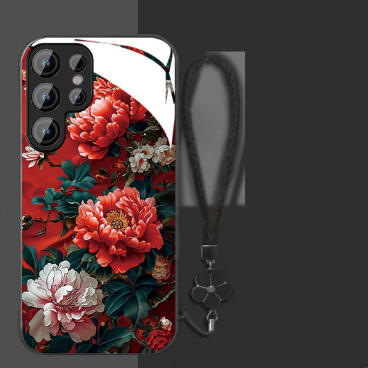 Side Rose Glitter Powder Four-corner Anti-fall Bracket Phone Case For Samsung