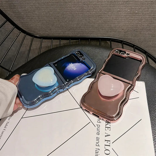 Luxury Heart Stand Plating Wave Edge Phone Case For Samsung Galaxy Z Flip Series