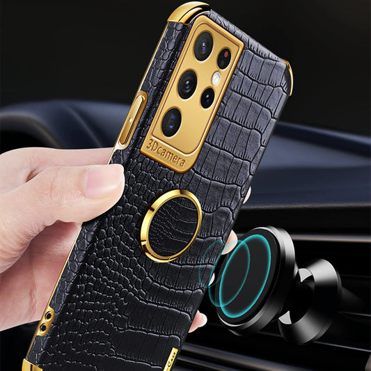 Metal Holder Leather Case For Samsung Galaxy S23 Ultra / S23 Plus / S23