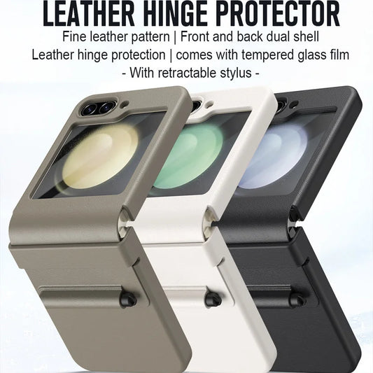 Suitable for Samsung Z Flip5 Solid Color Non-slip Leather All-inclusive Protective Case with Pen and Film