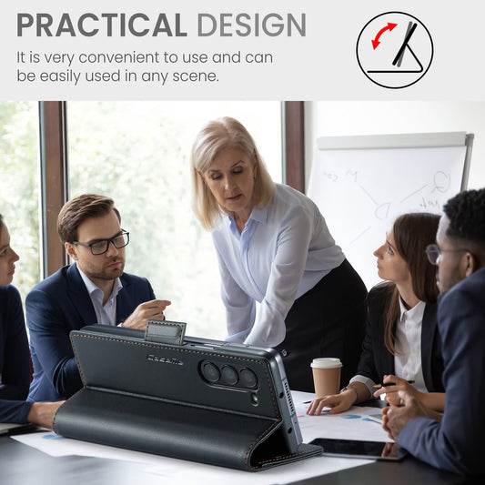MagSafe Flip Leather Wallet Case for Samsung S25/S24/S23/S22 – RFID Blocking, Card Slots, Full Protection