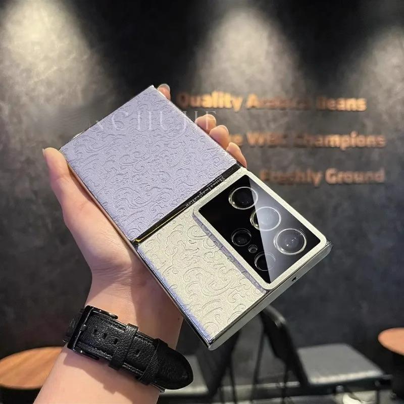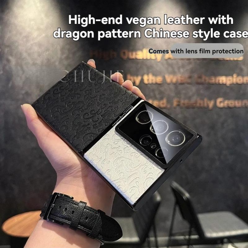 Samsung S23/S23+/S23U Phone Case, Vegan Leather Cloud Dragon Pattern, Color Matching Drop-resistant Case