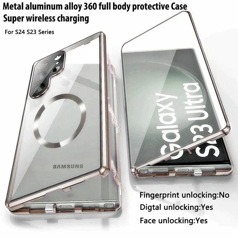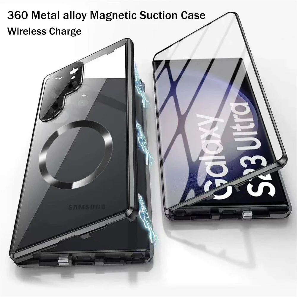 Magnetic Metal Aluminum Alloy 360° Full Surround Screen Glass Case for Samsung