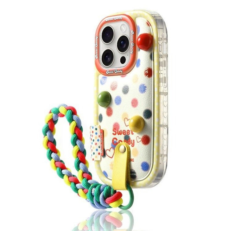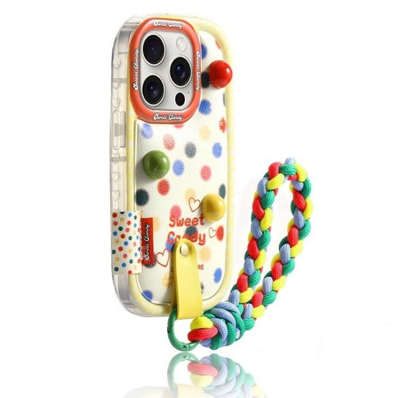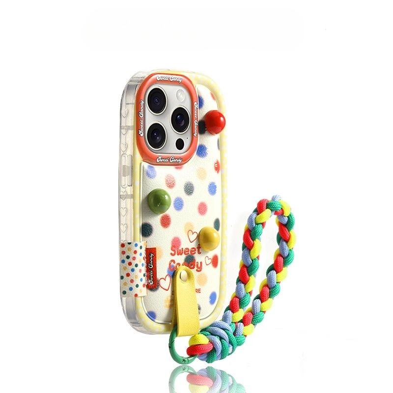 Curved Wave-dot Three-dimensional Jelly Bean Lanyard Case For IPhone