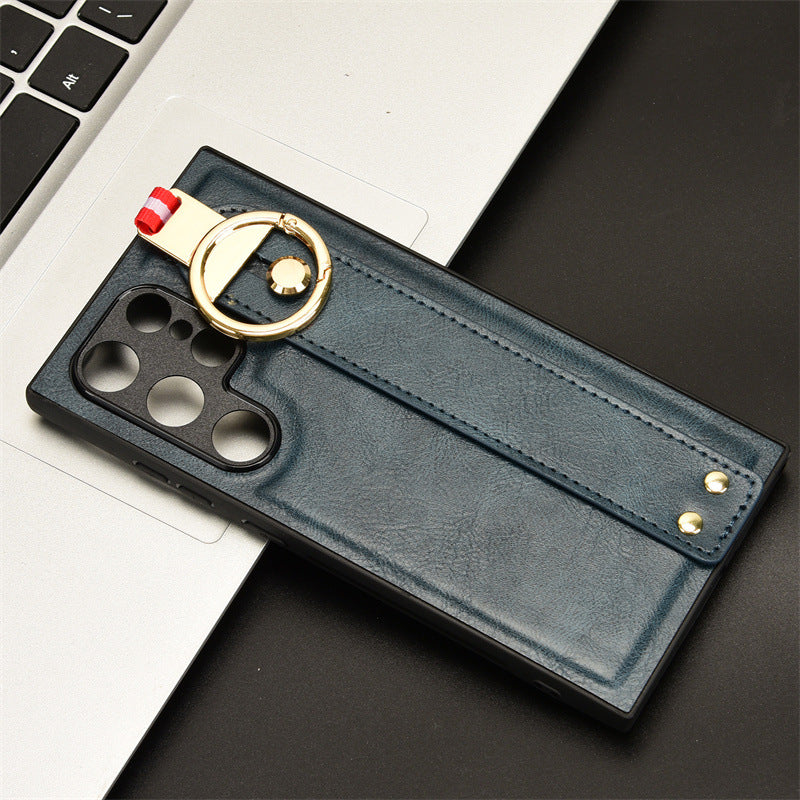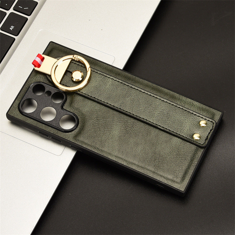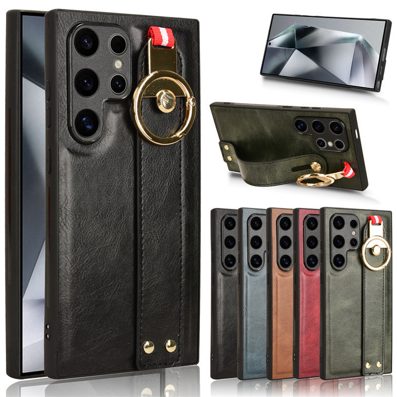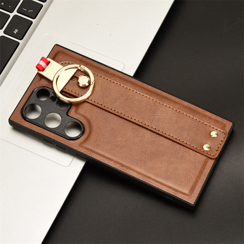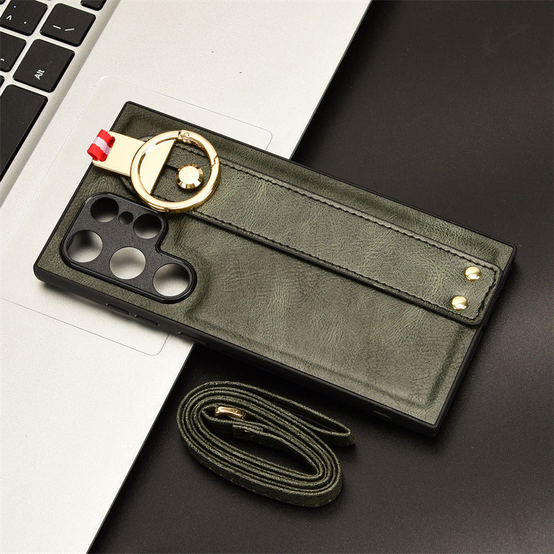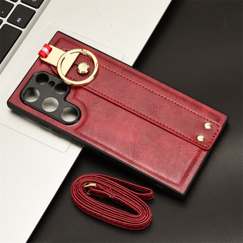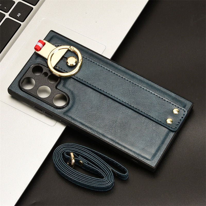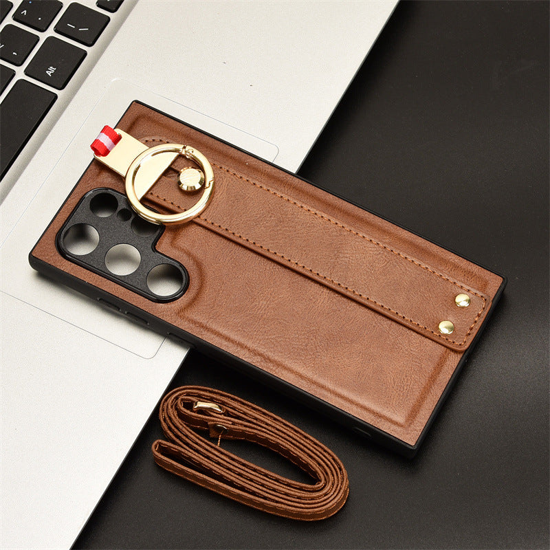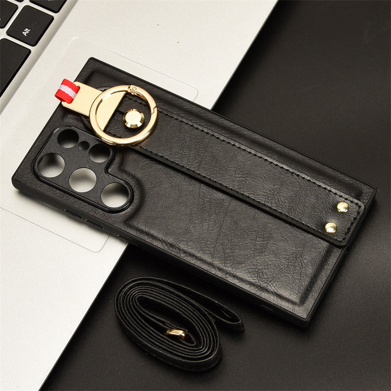 Wrist Strap Lanyard Leather Phone Case For Samsung