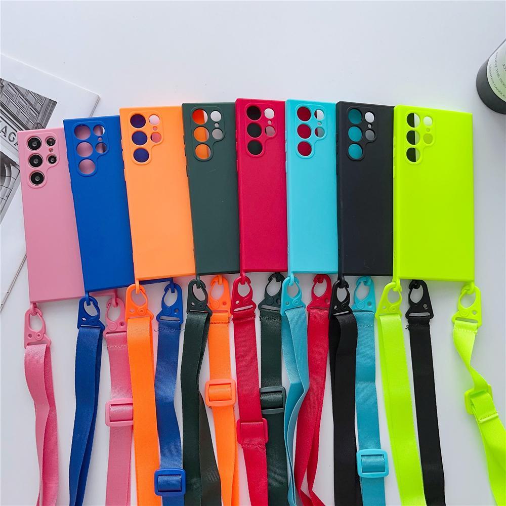 Crossbody Strap Lanyard Liquid Silicone Case For Samsung