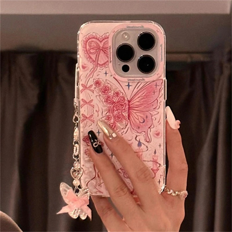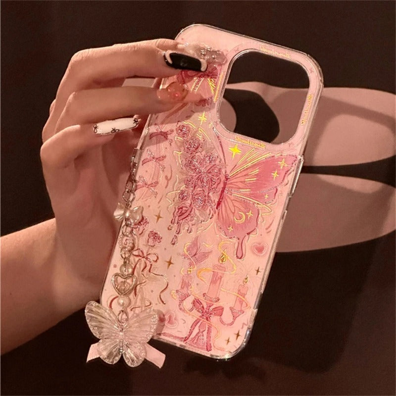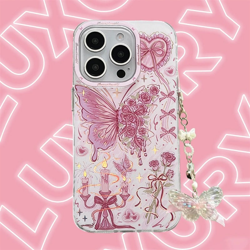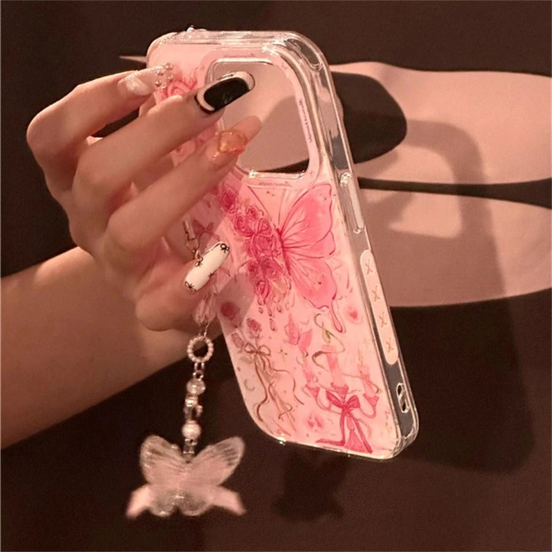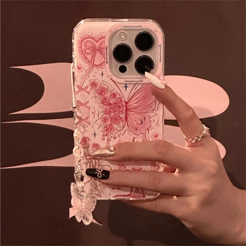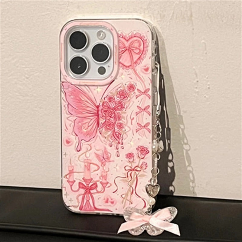 Butterfly Bowknot Rose Pink Phone Case For iPhone
