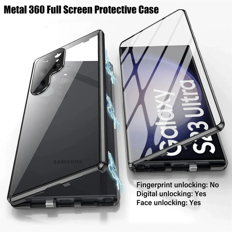 Magnetic Metal Aluminum Alloy 360° Full Surround Screen Glass Case for Samsung
