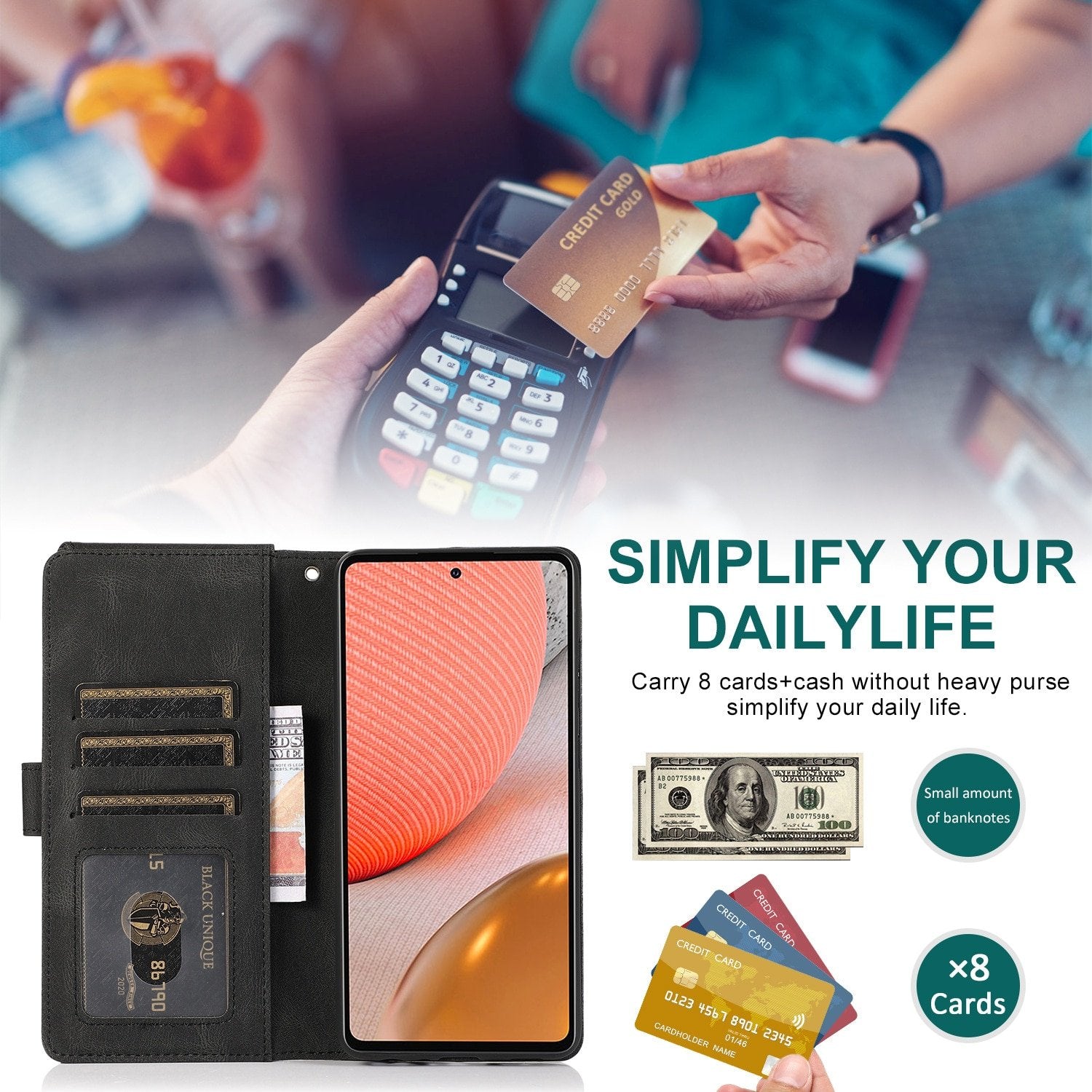 4, Used Like a Wallet: Multi-card Slots can carry 8 cards and cash without heavy purse to convenient your life.