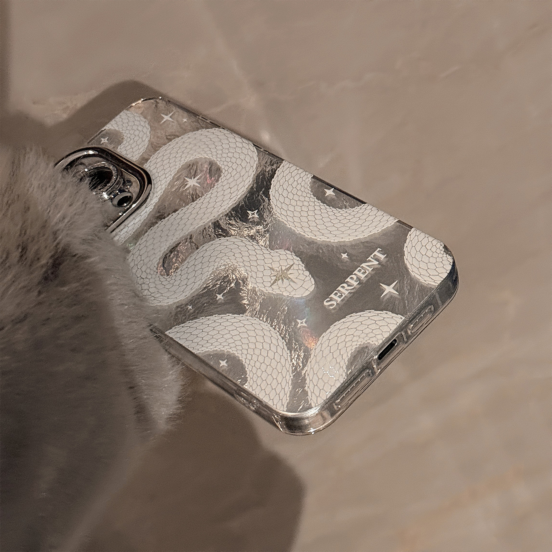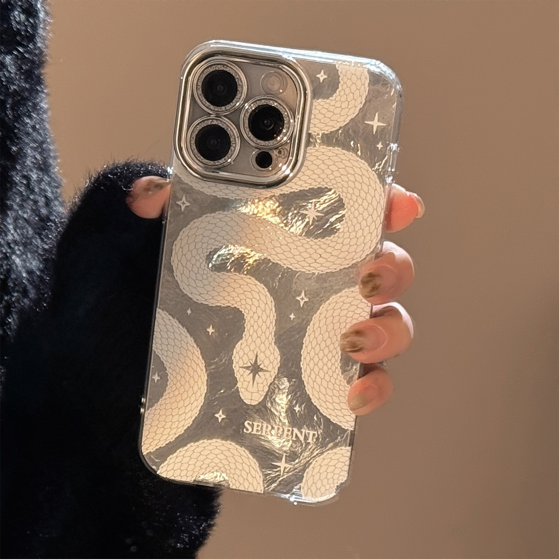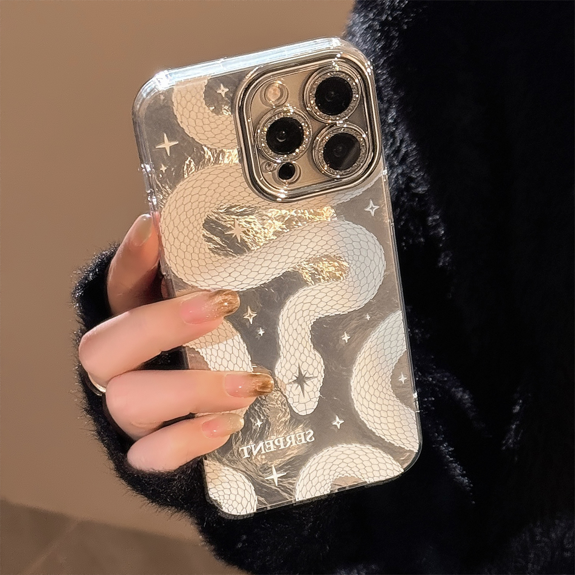 2025 White Python Pattern Phone Case For iPhone Lens Glitter
