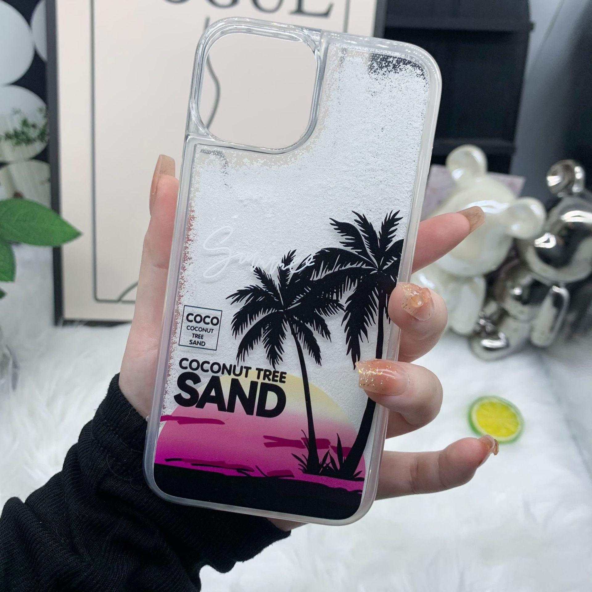 Advanced quicksand new beach coconut tree pattern mobile phone protective case