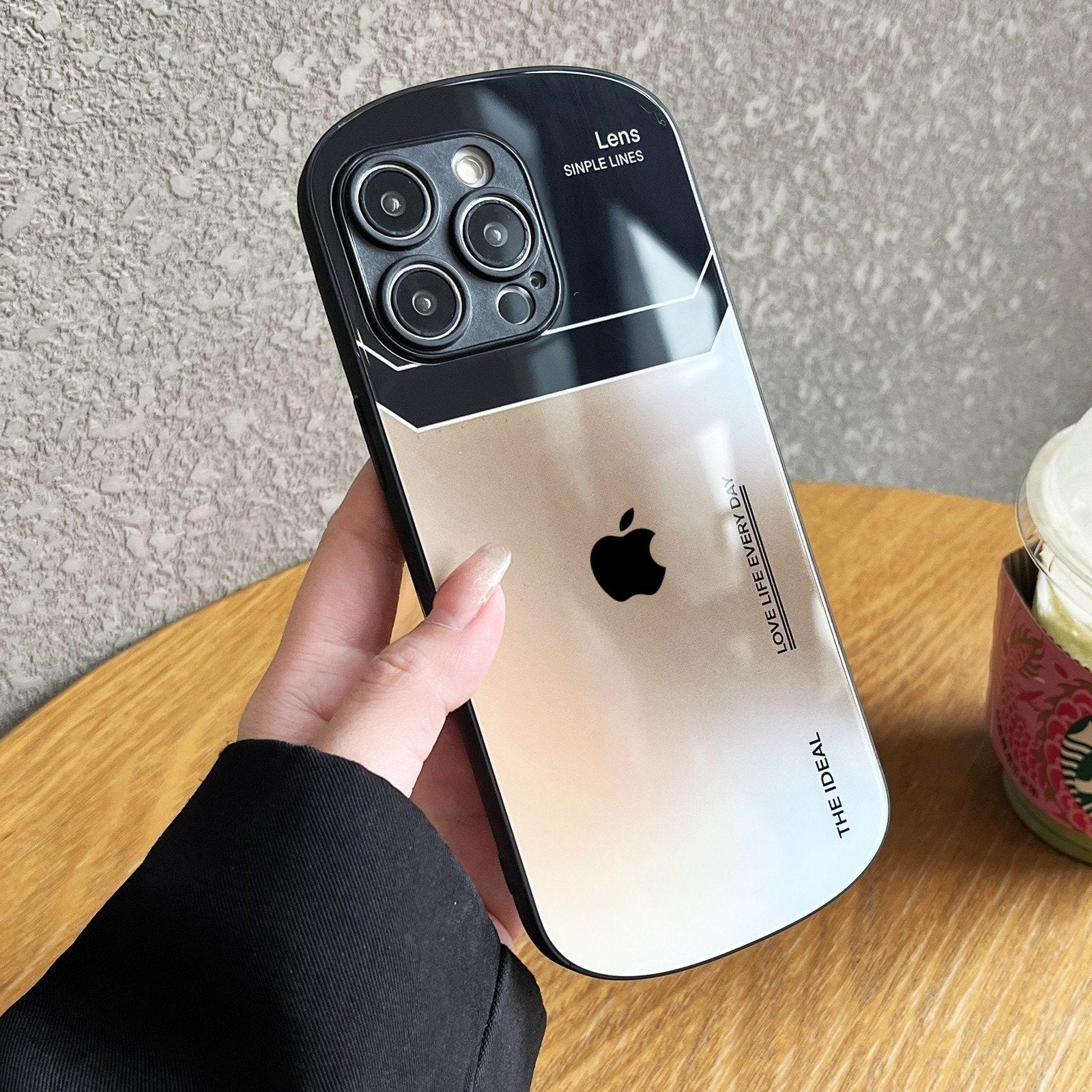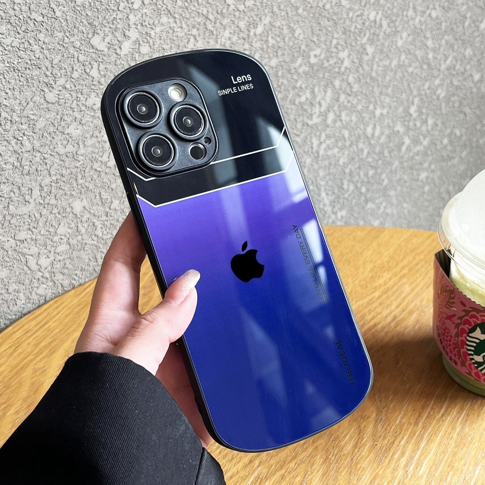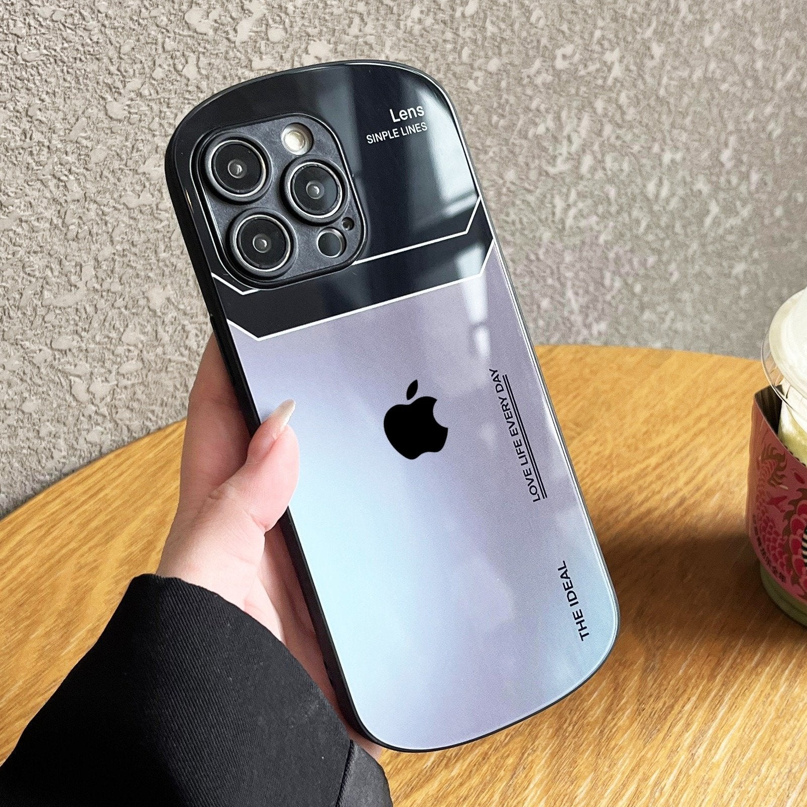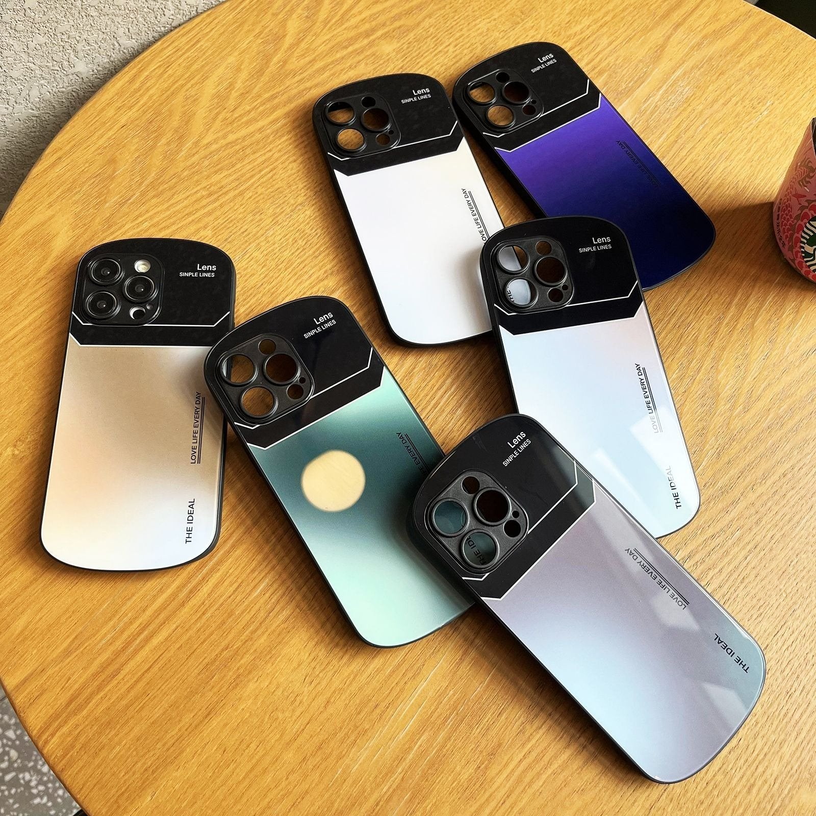 Apple 13/14/15 phone case, oval letters, glass, simple, gradient, mini