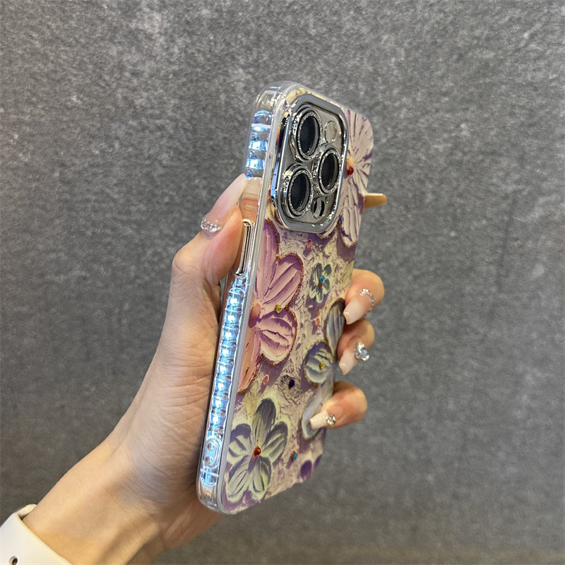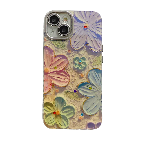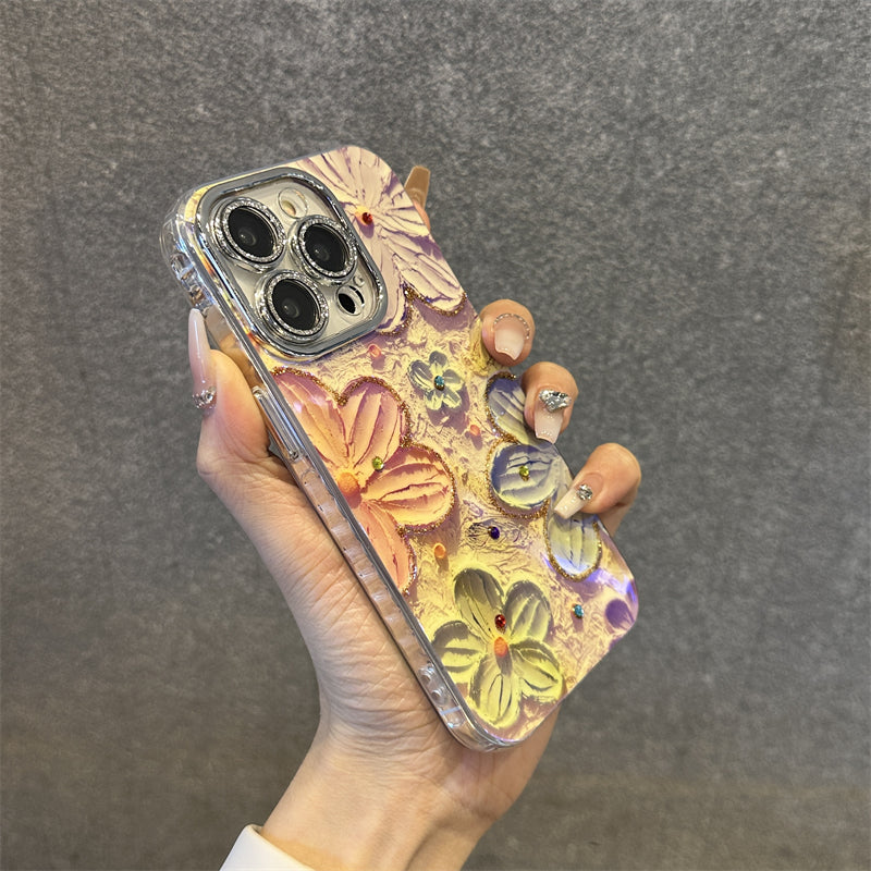 Blu-ray Diamond-studded Colorful Flower Phone Case For iPhone 15 Series
