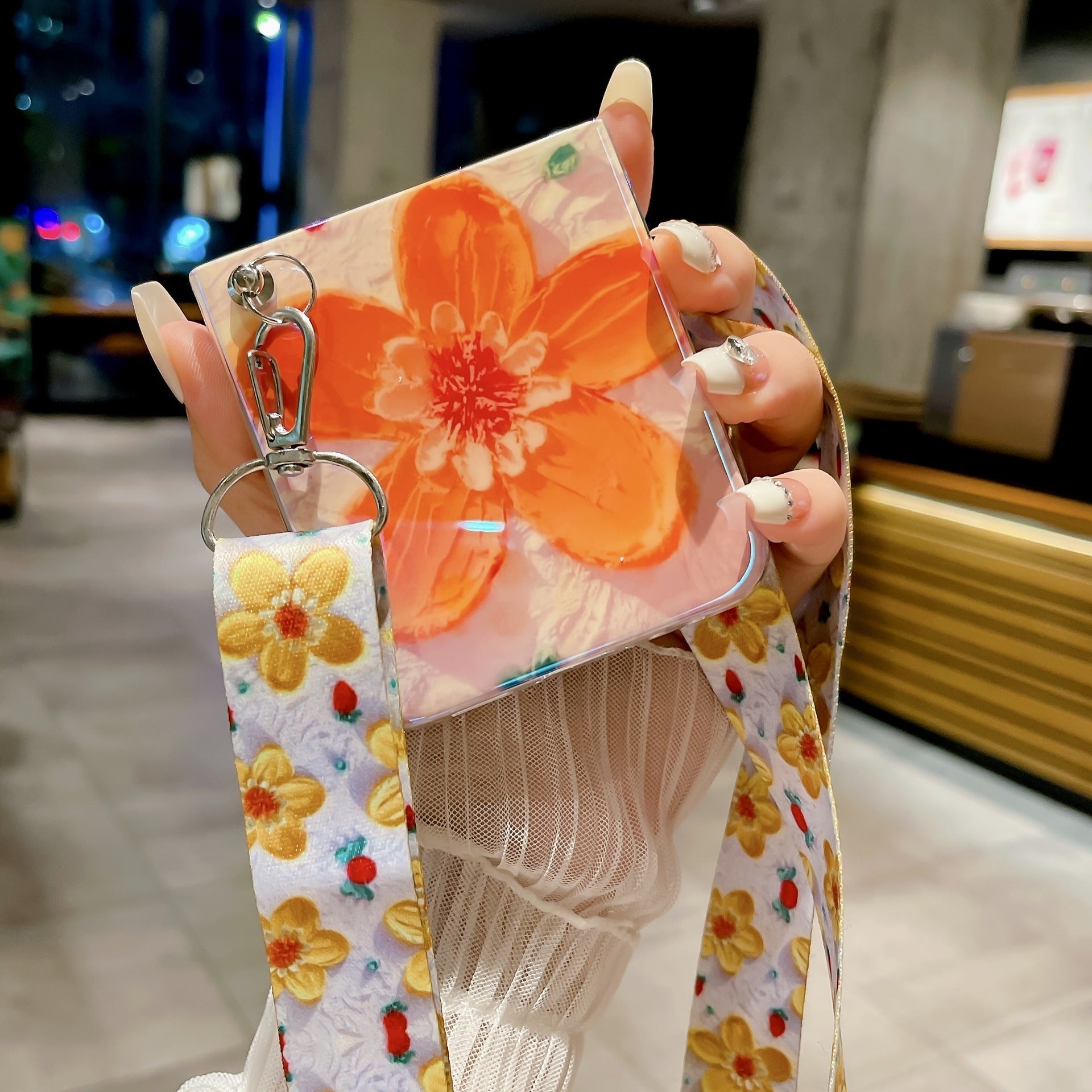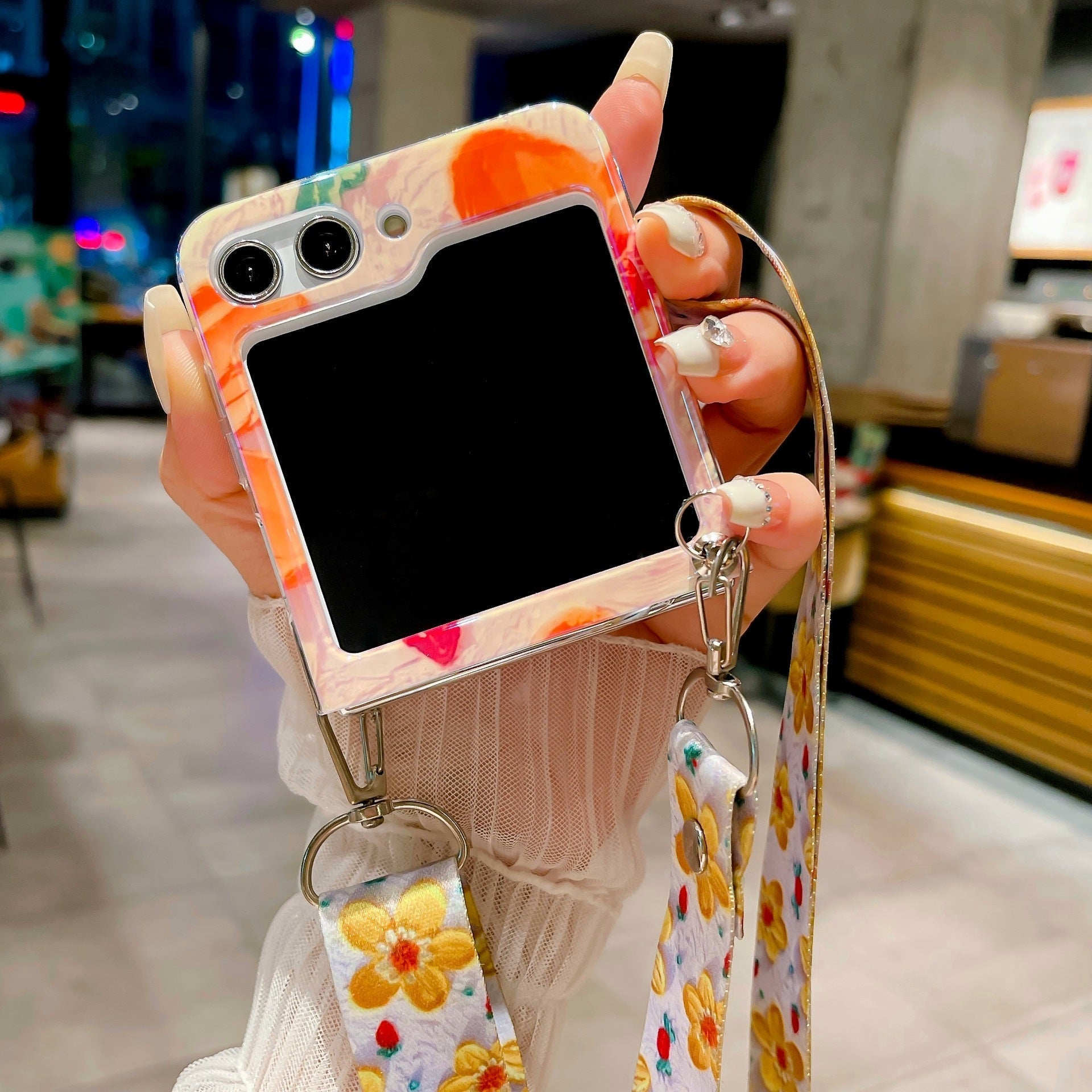 Blu-ray oil painting flowers crossbody phone case for samsung z flip series