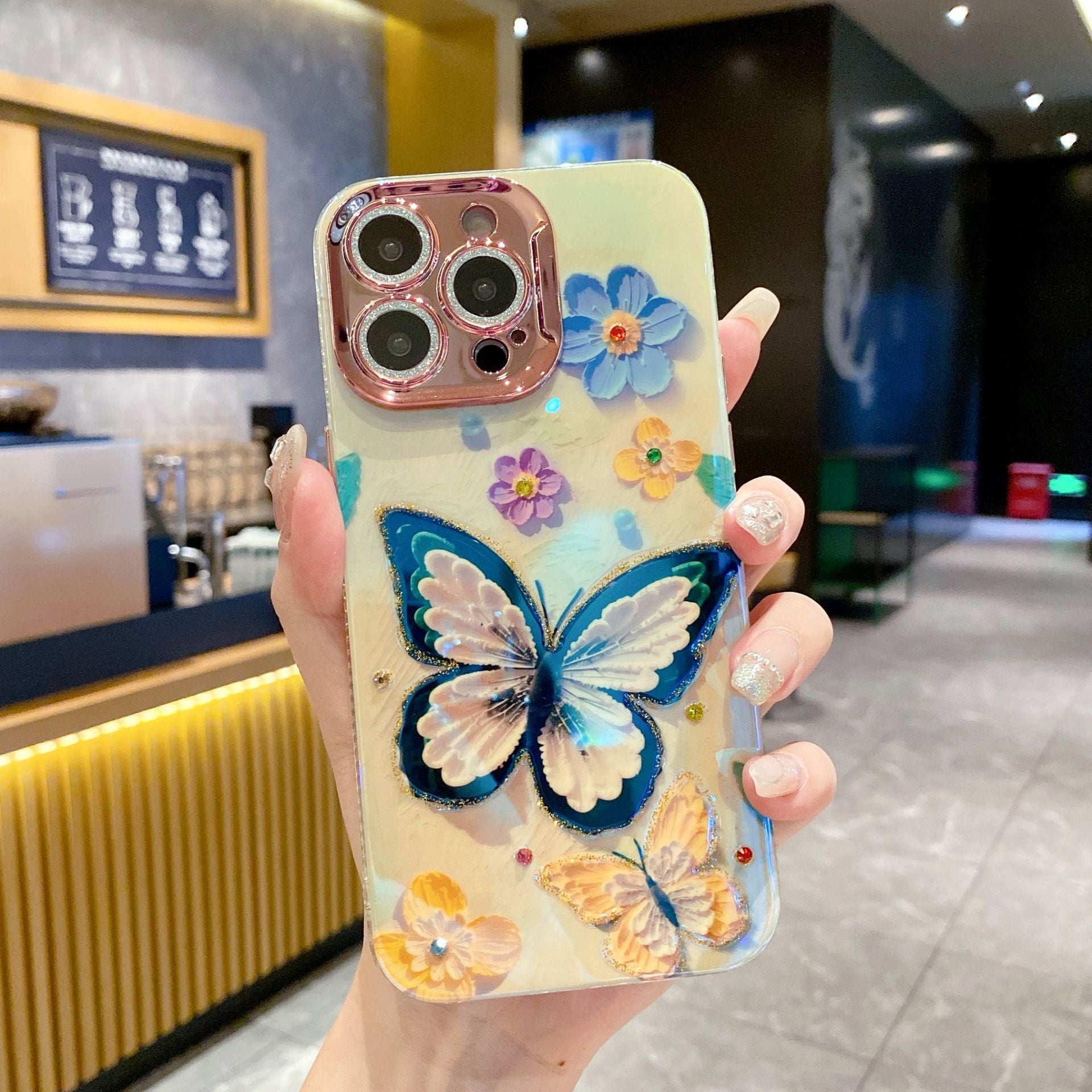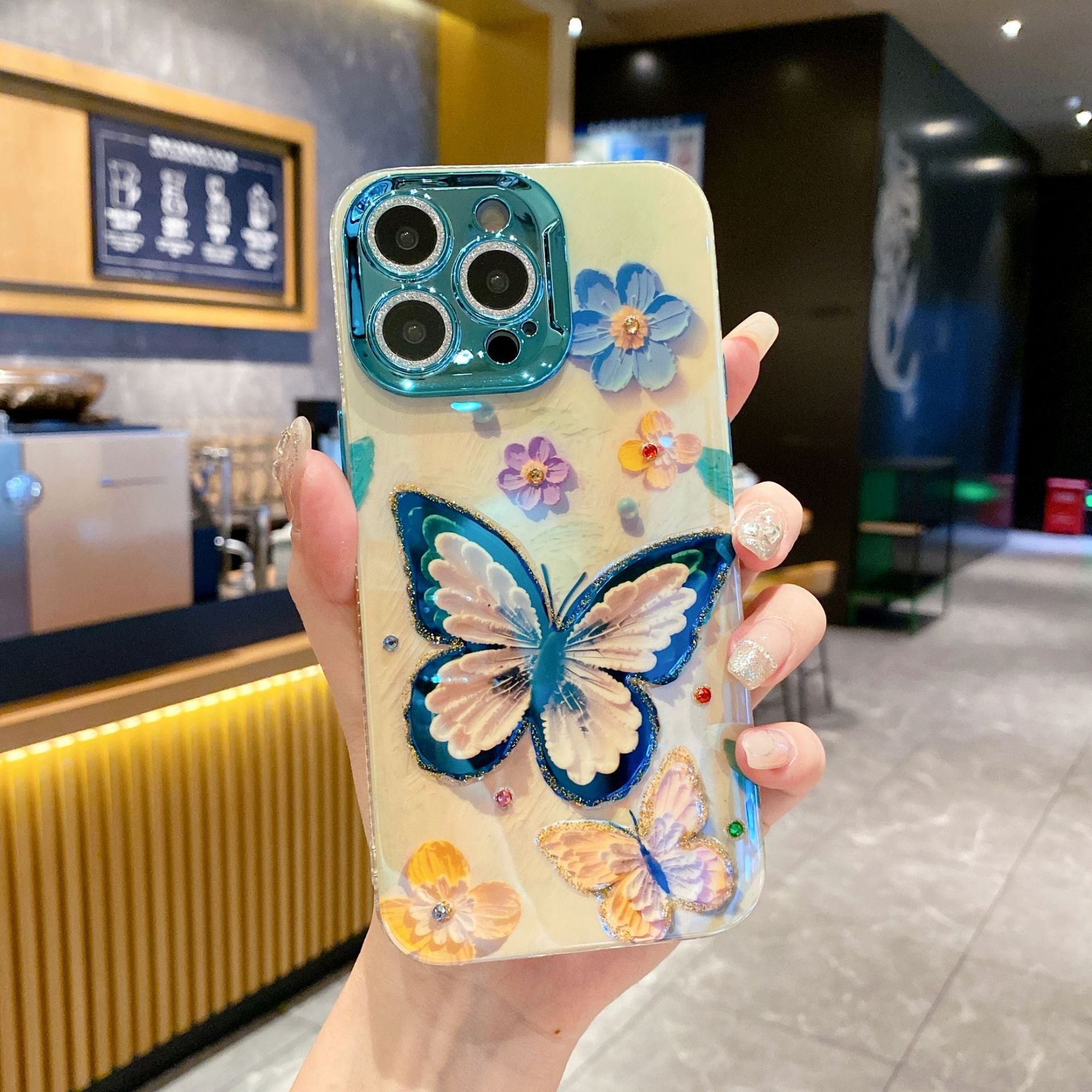Blue butterfly epoxy double layer advanced anti-fall mobile phone case