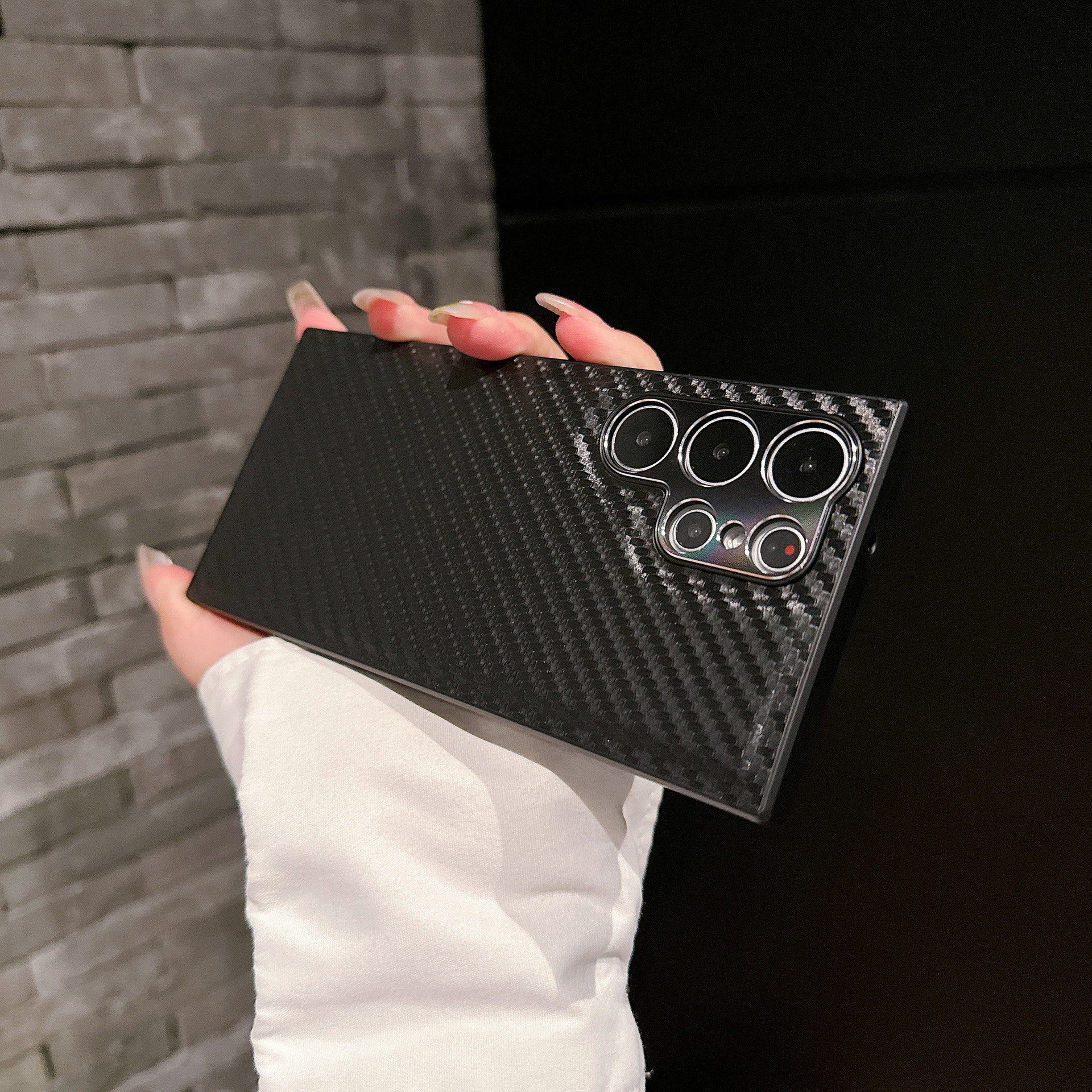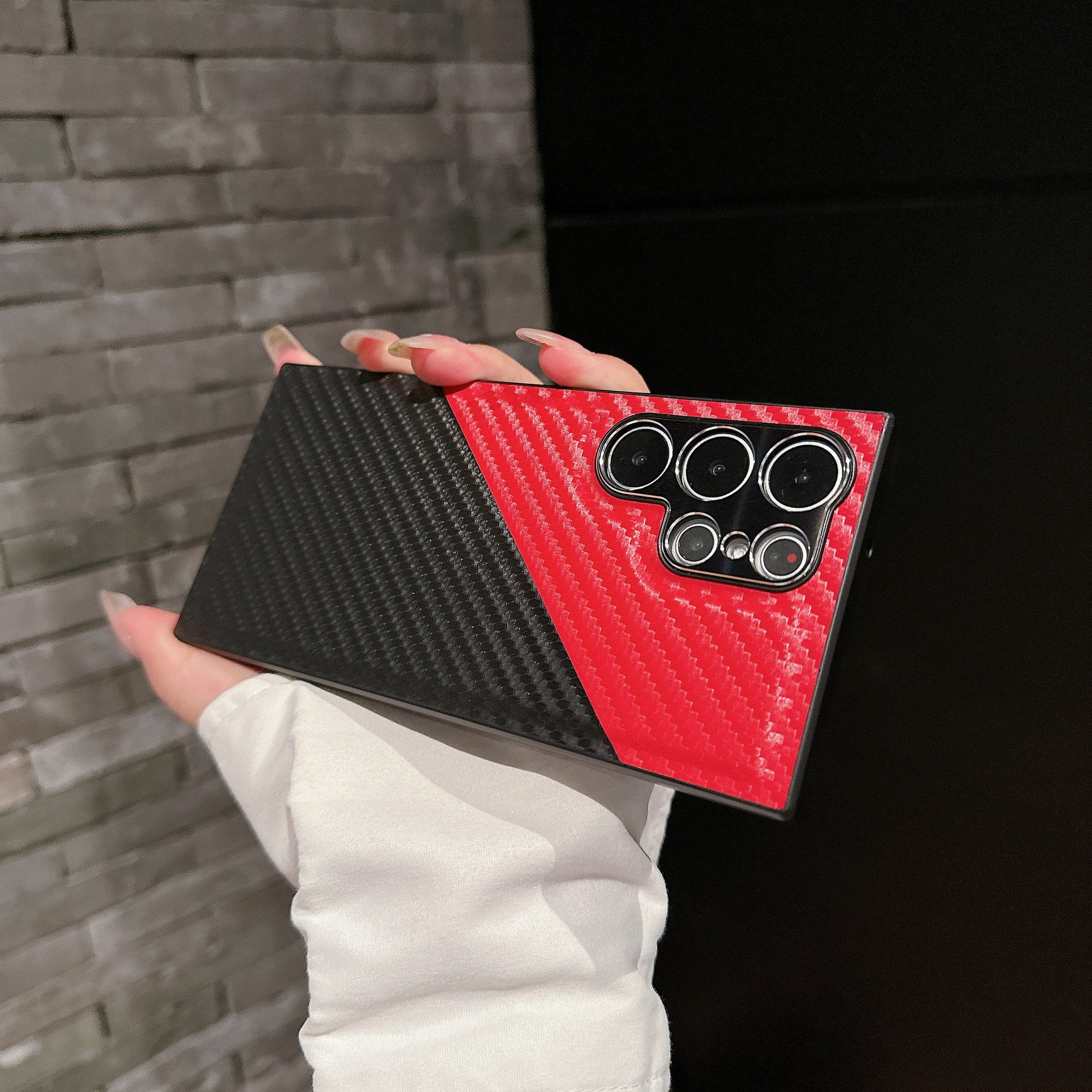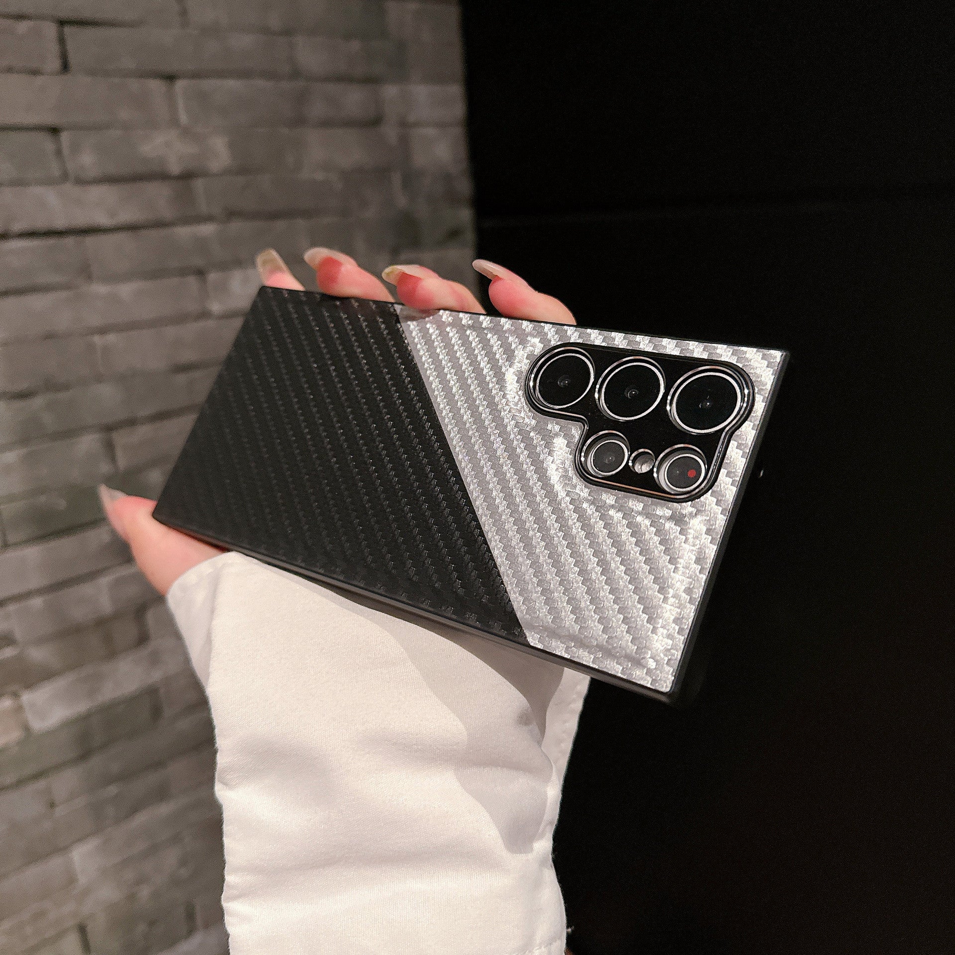 Business contrast color carbon fiber leather grain metal lens drop-proof mobile phone case