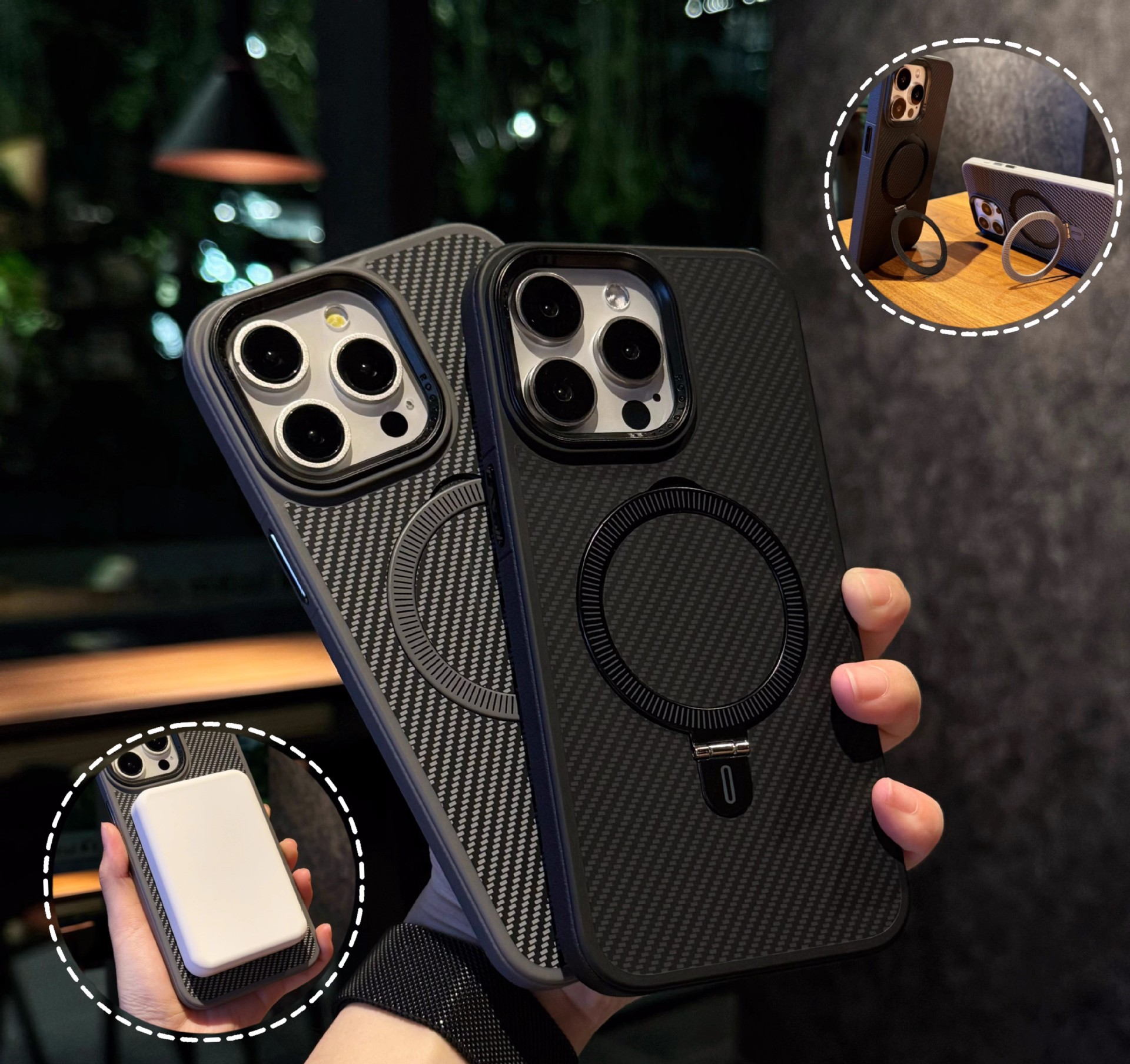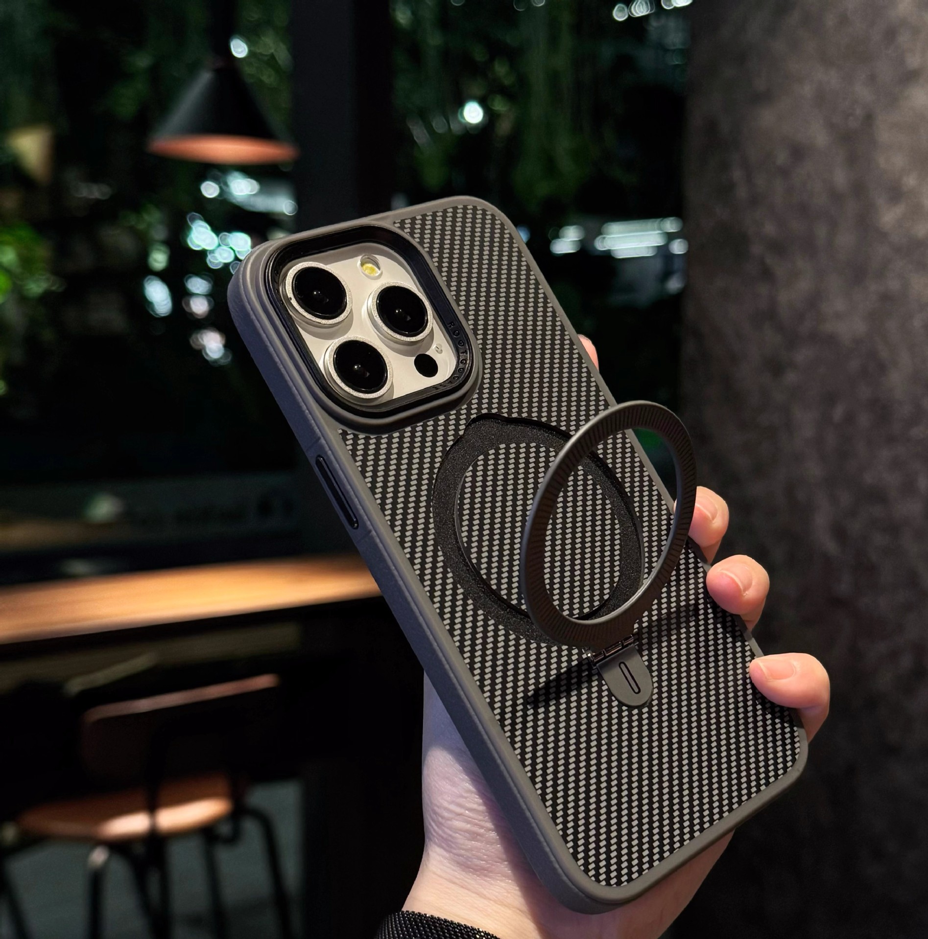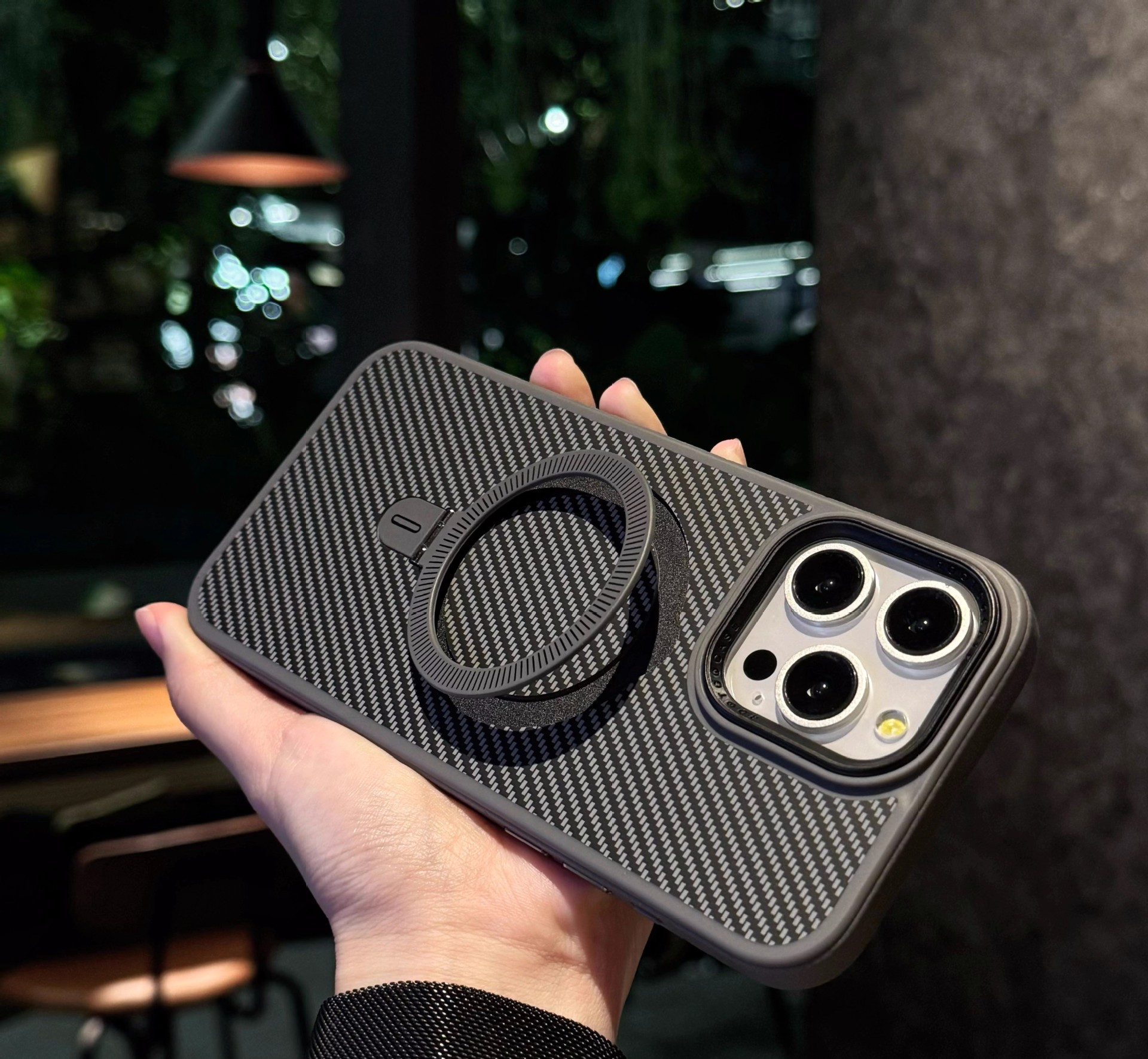 Carbon fiber PC magnetic bracket anti-fall mobile phone case