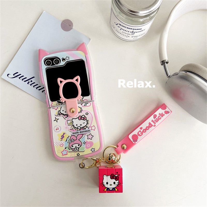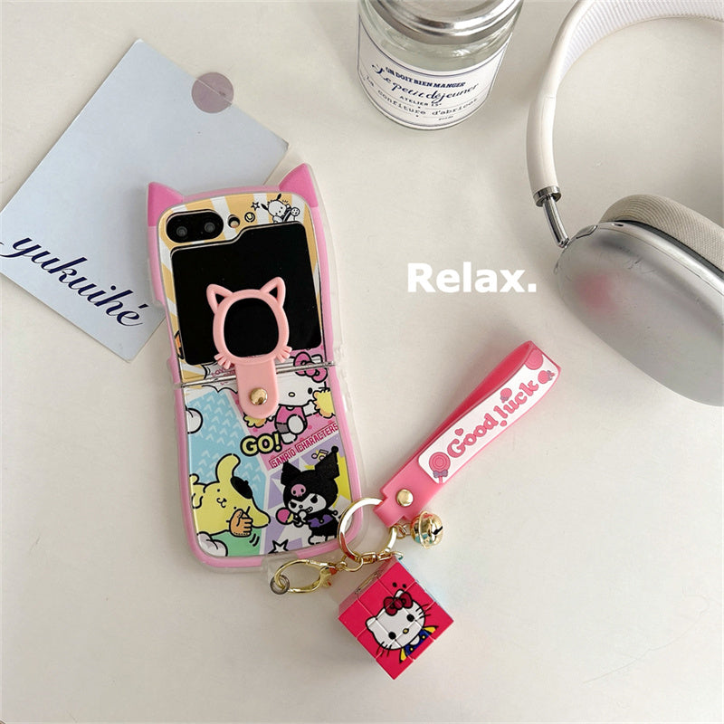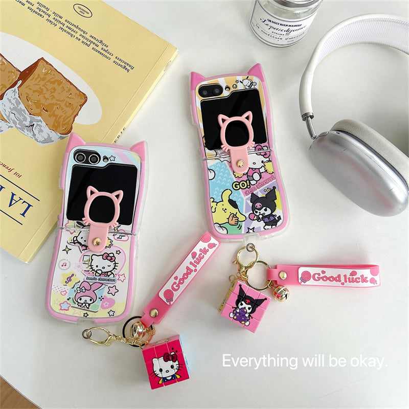Cartoon Cat Case for Samsung Z Flip 6 & 5 with Free Hand Strap