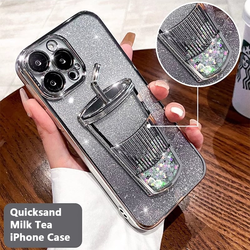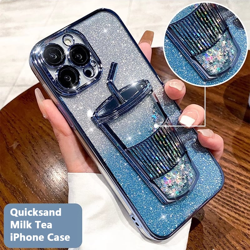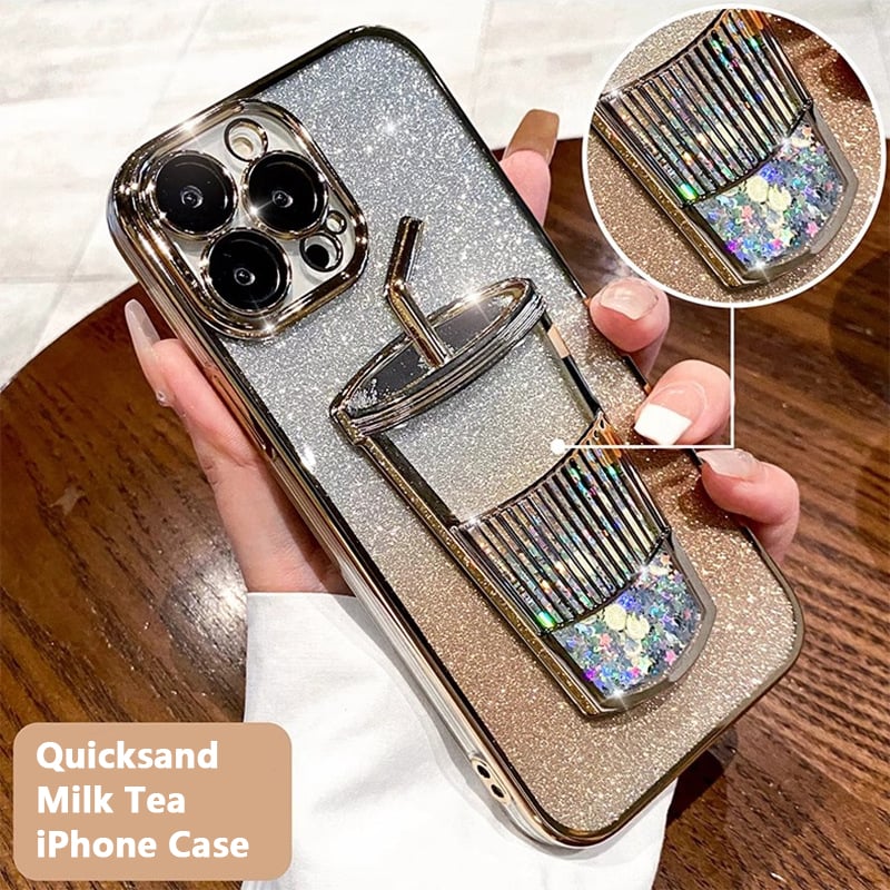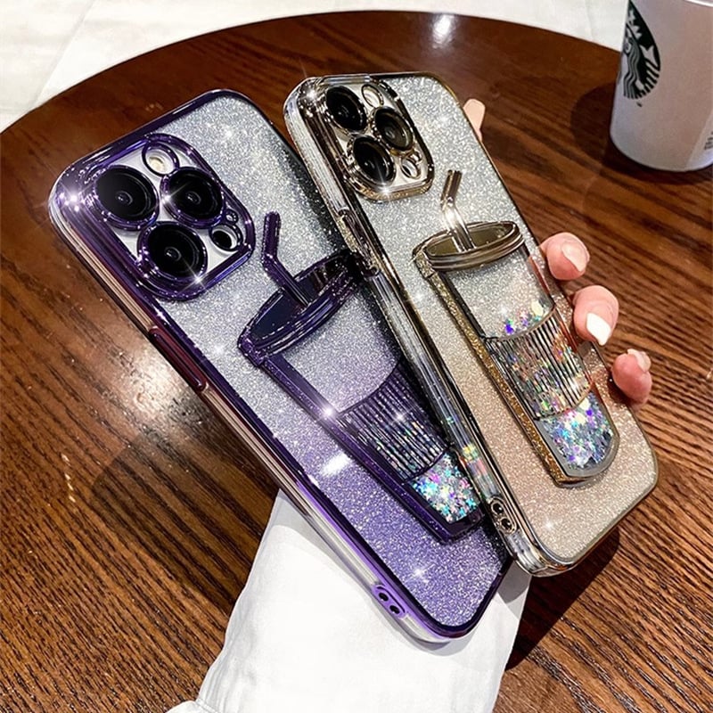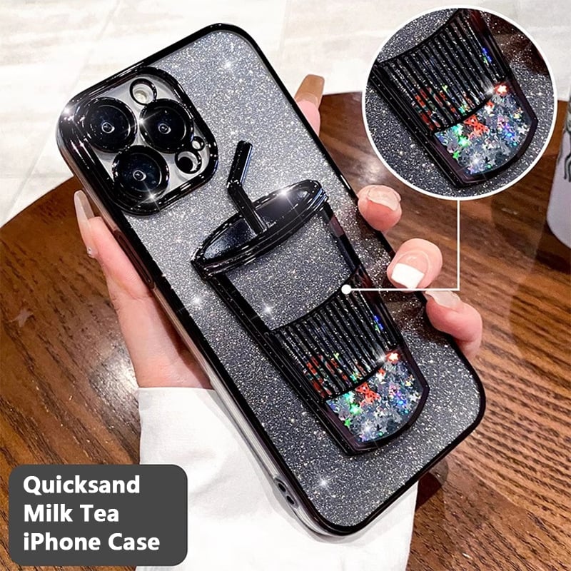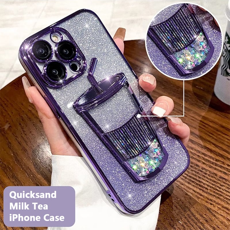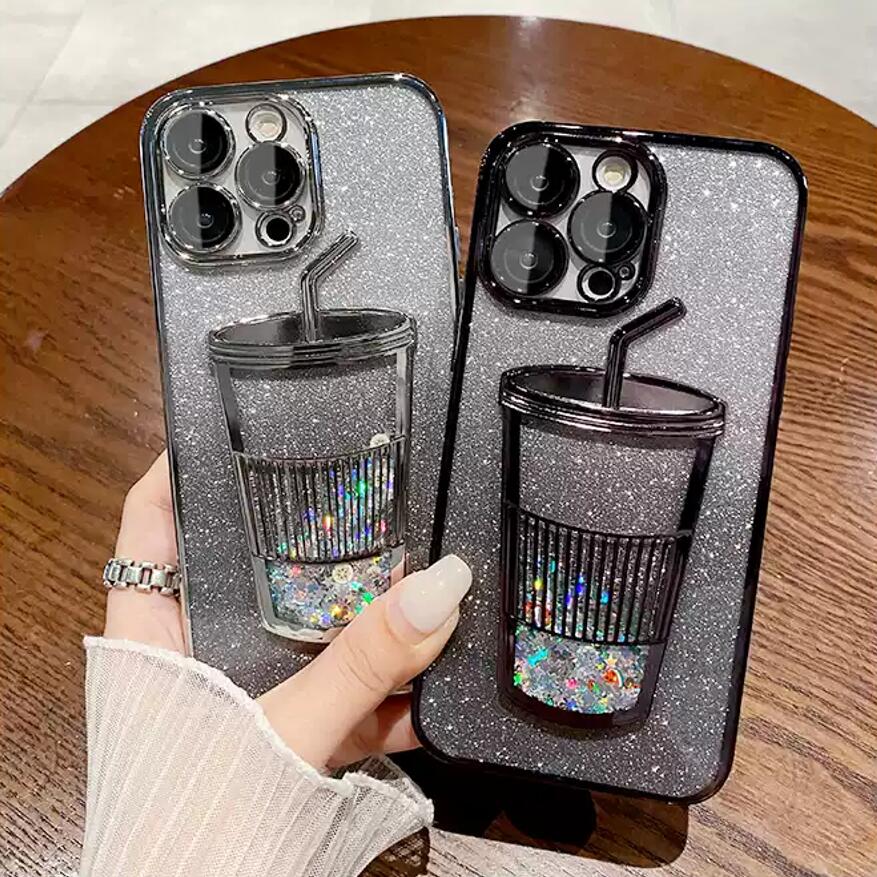 The glitter powder shining in the light or sunlight, looks noble and beautiful.Unique milk tea design, infused with liquid and glitters,tightly sealed process.The inside glitters float freely when you move your phone.