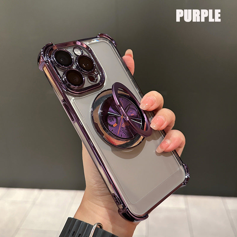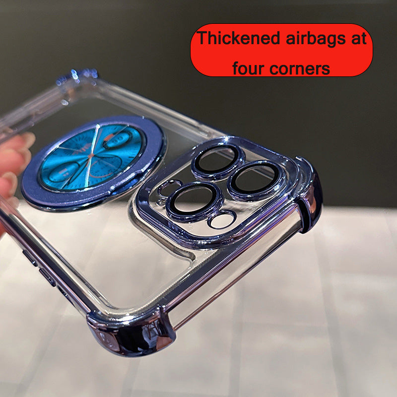 Invisible Bracket --- This airbag phone case adopts a two-in-one design. There is a ring bracket on the back, which is integrated with the shell design. The bracket is flush with the shell. It can be used in multiple scenes and at any angle. 360° rotation;It can be used as a mobile phone stand for watching movies. . Infinitely adjustable, free your hands.