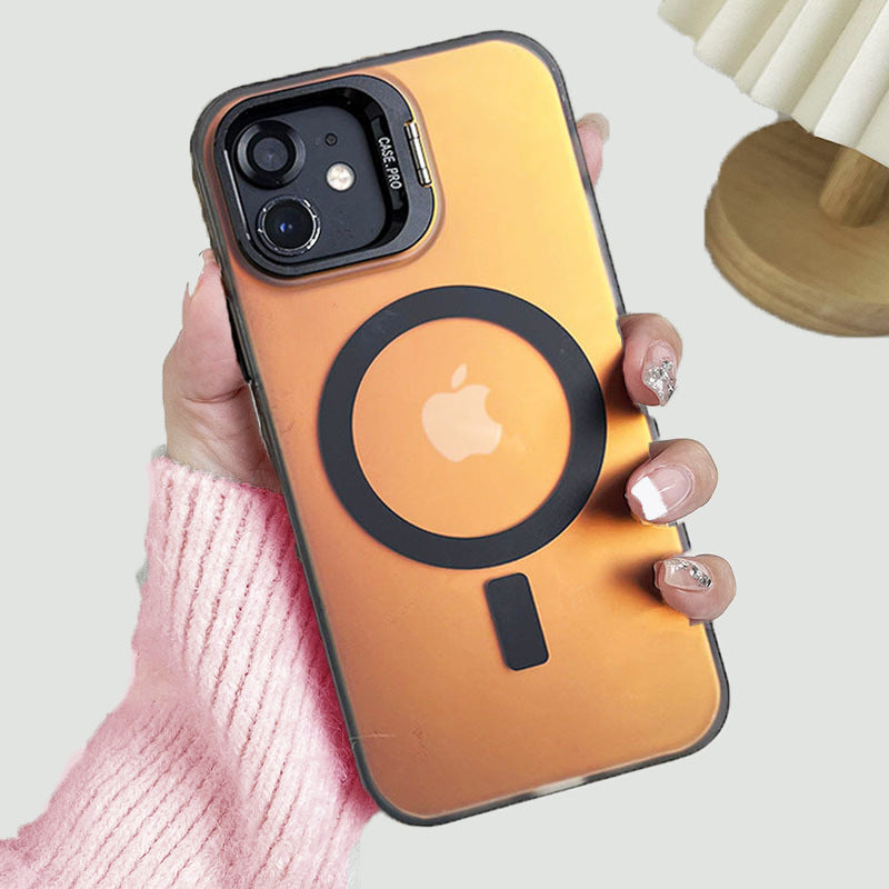 A gradient phone case designed for iPhone 15 series, supporting magnetic wireless charging.