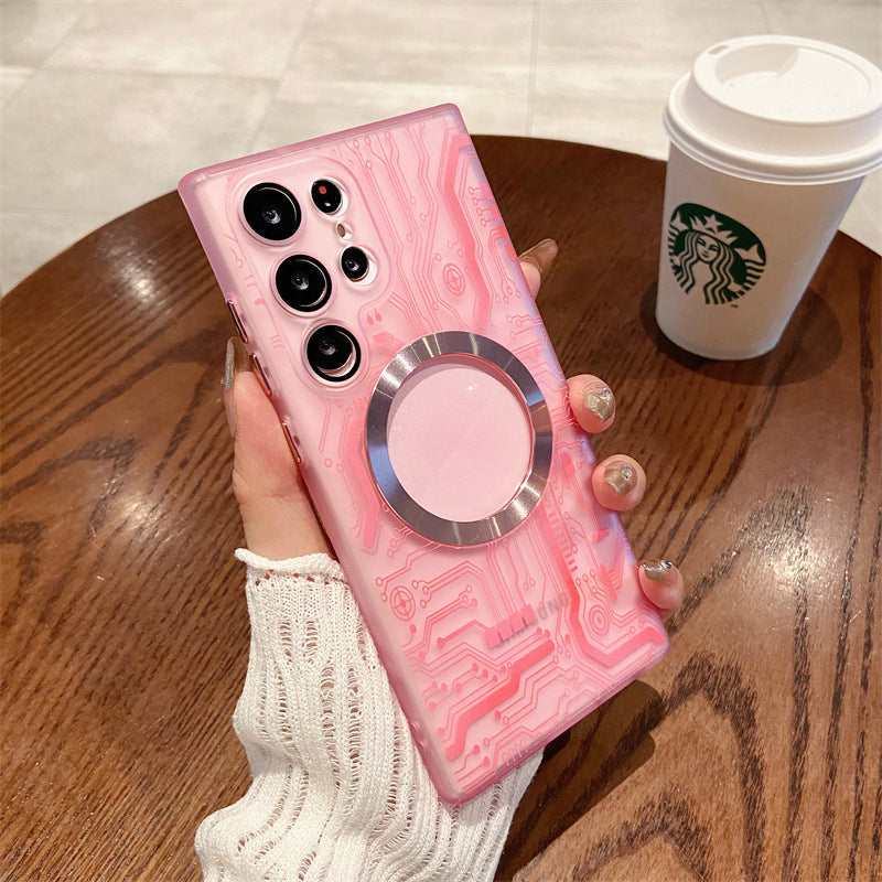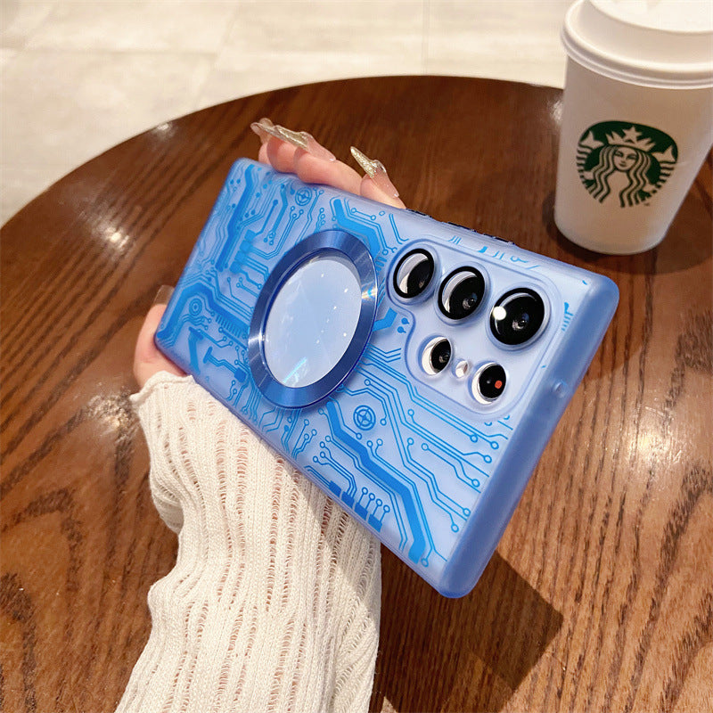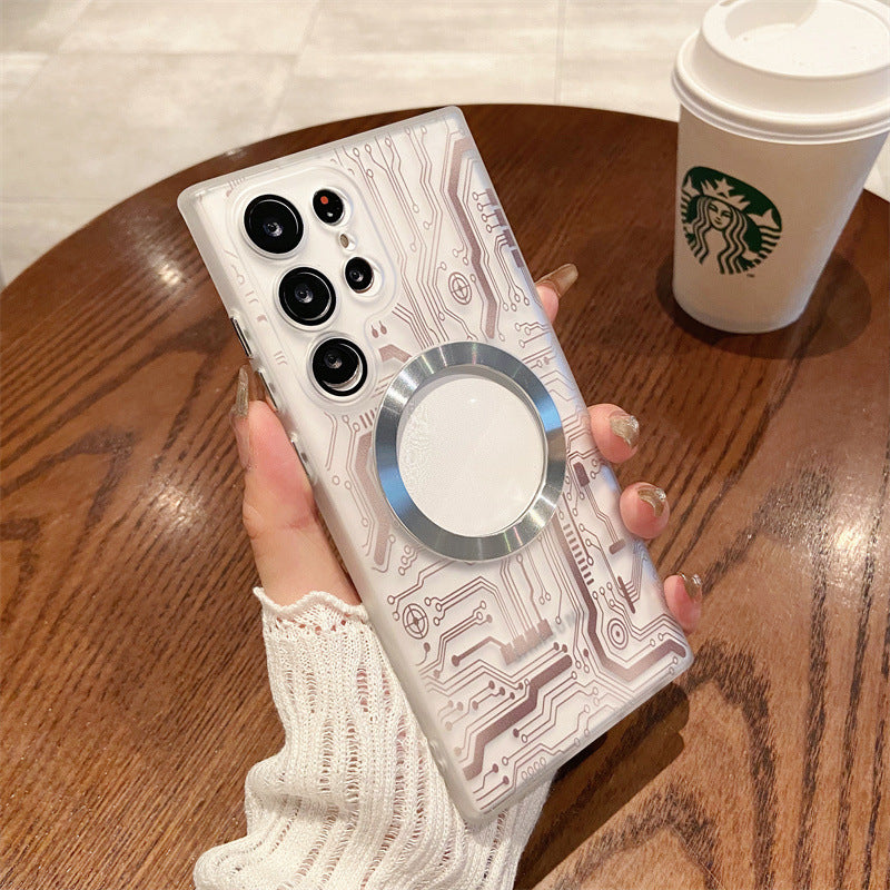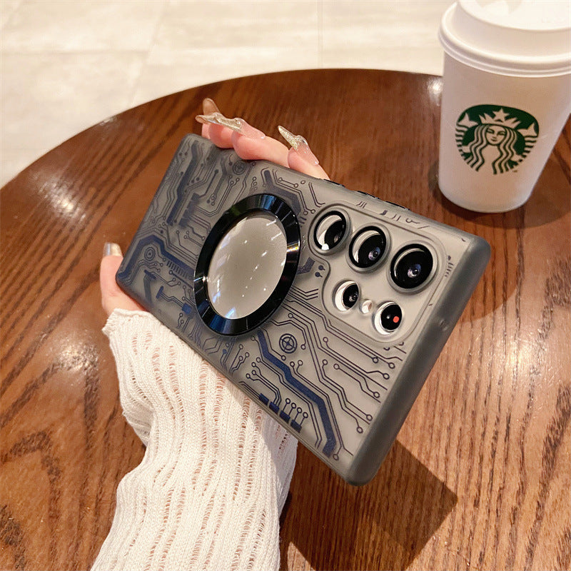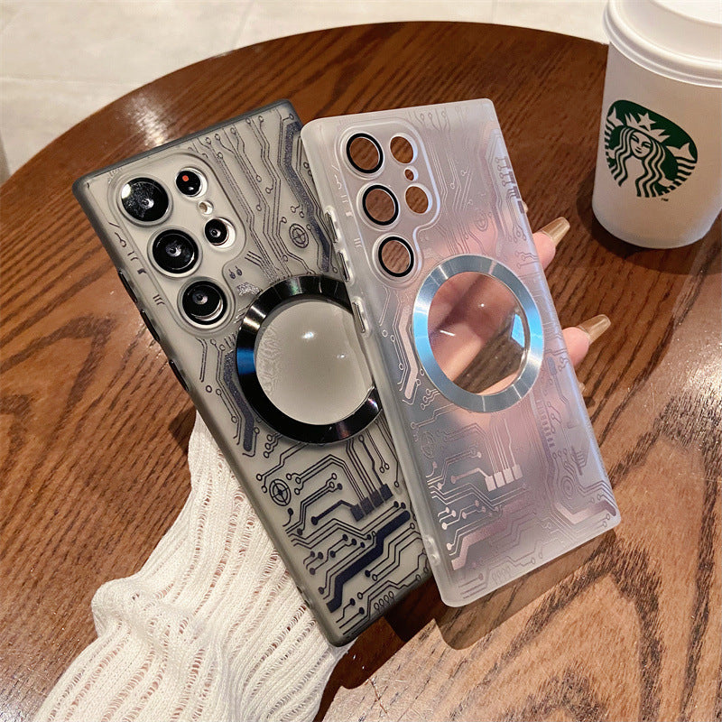 Transparent Circuit Board Pattern Magnetic Phone Case