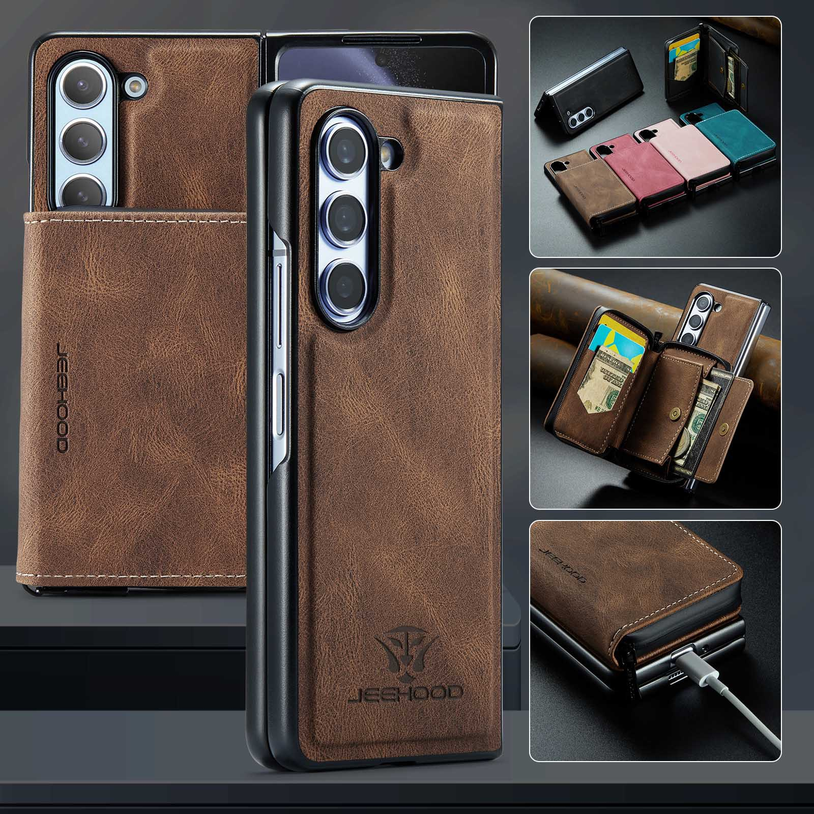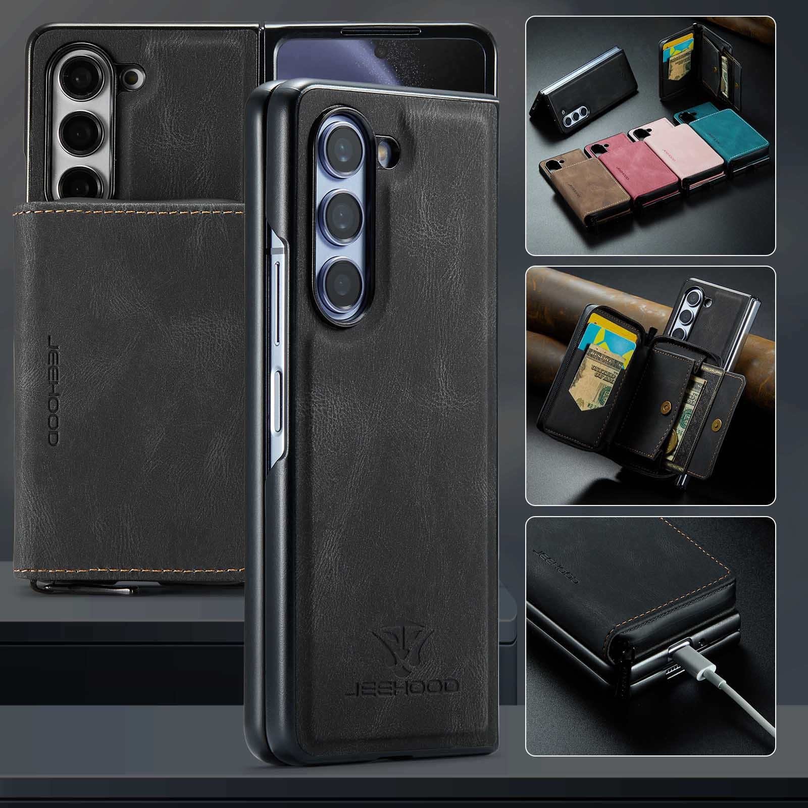 Suitable for Samsung ZFold5 Magnetic Split Zipper Wallet Phone Case