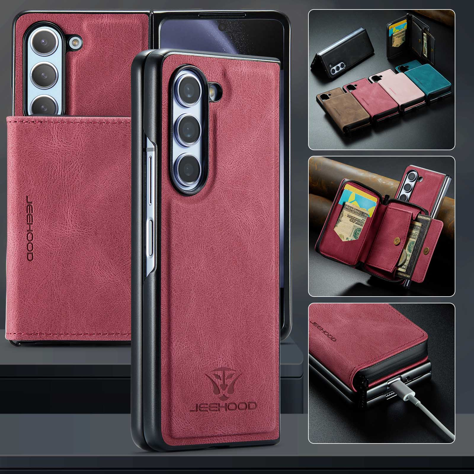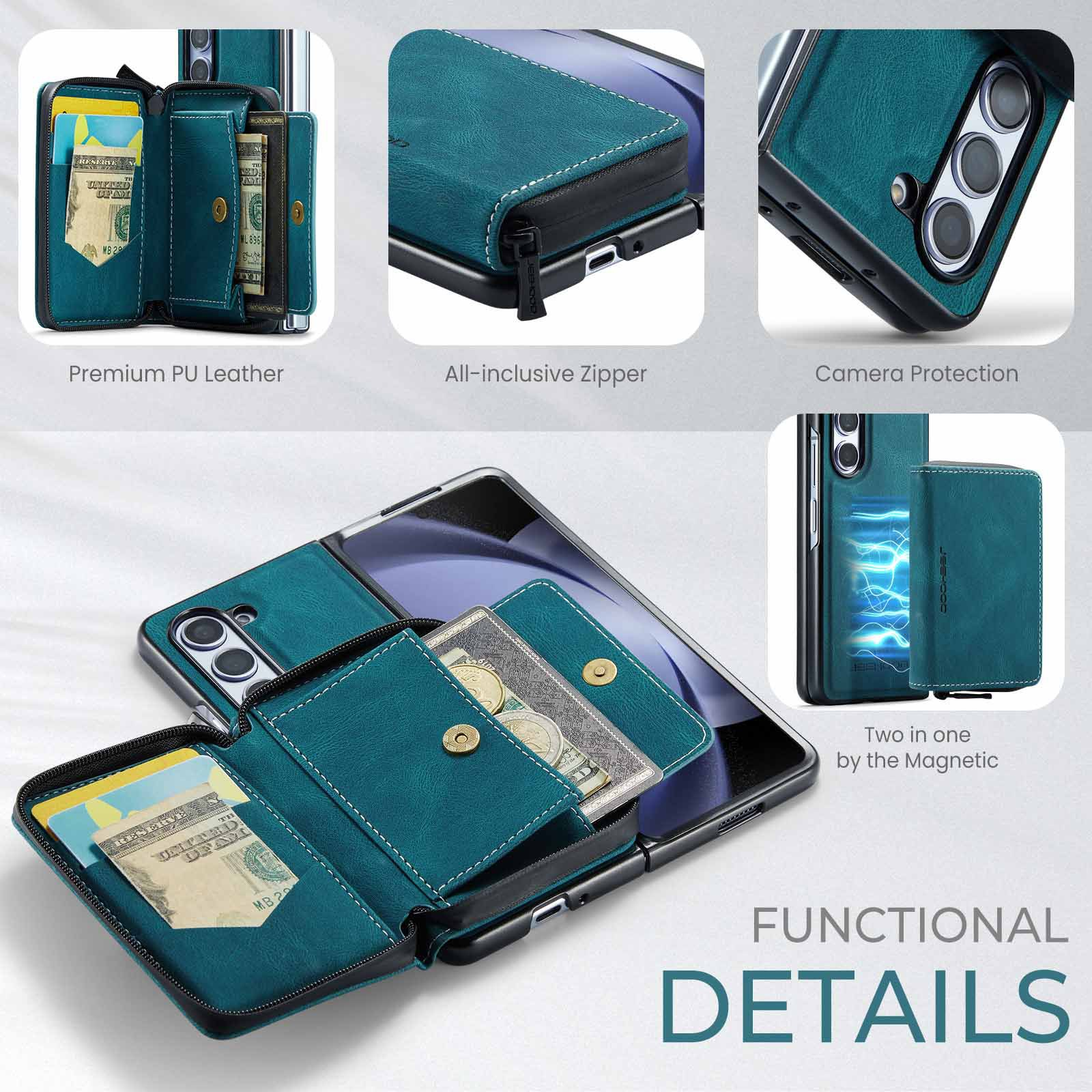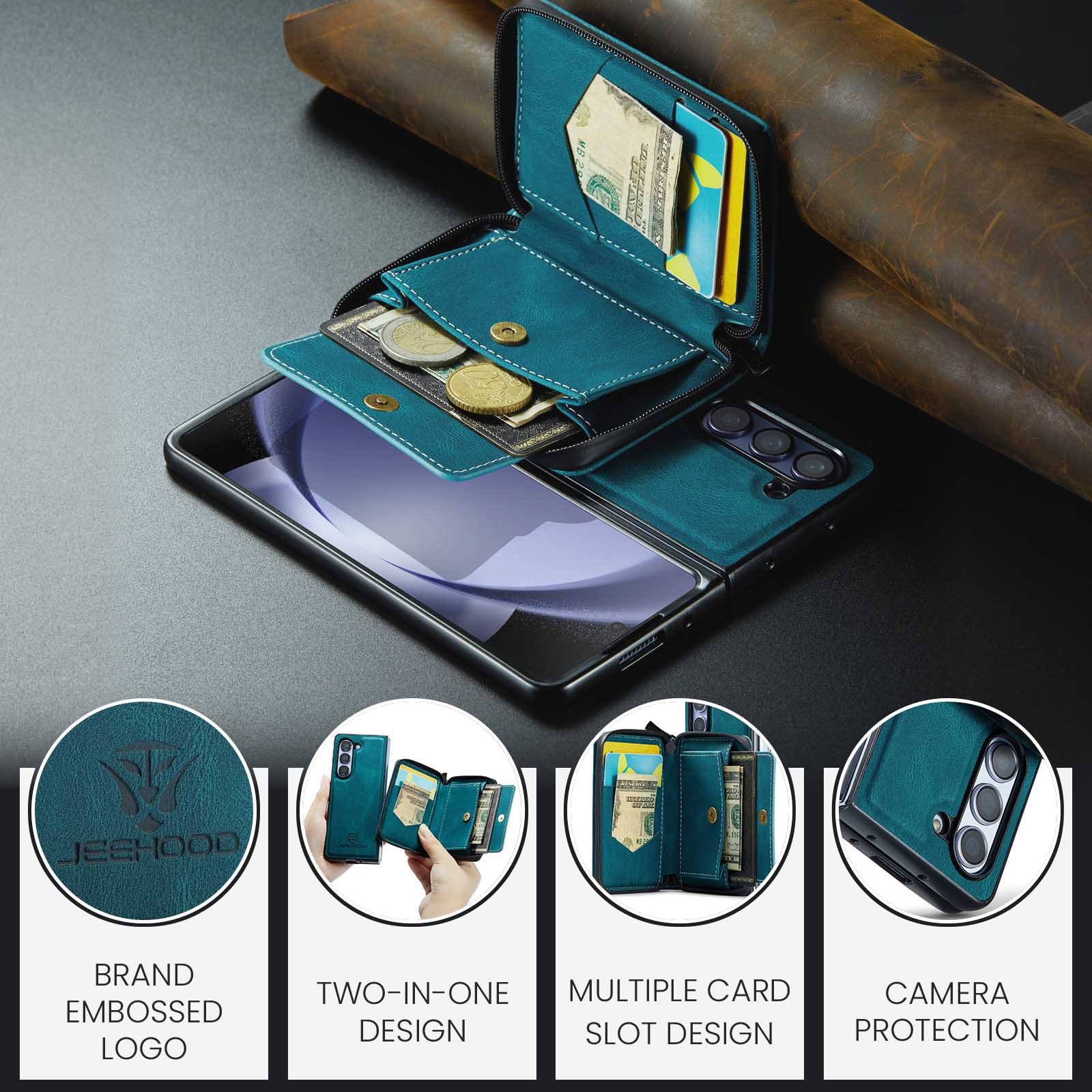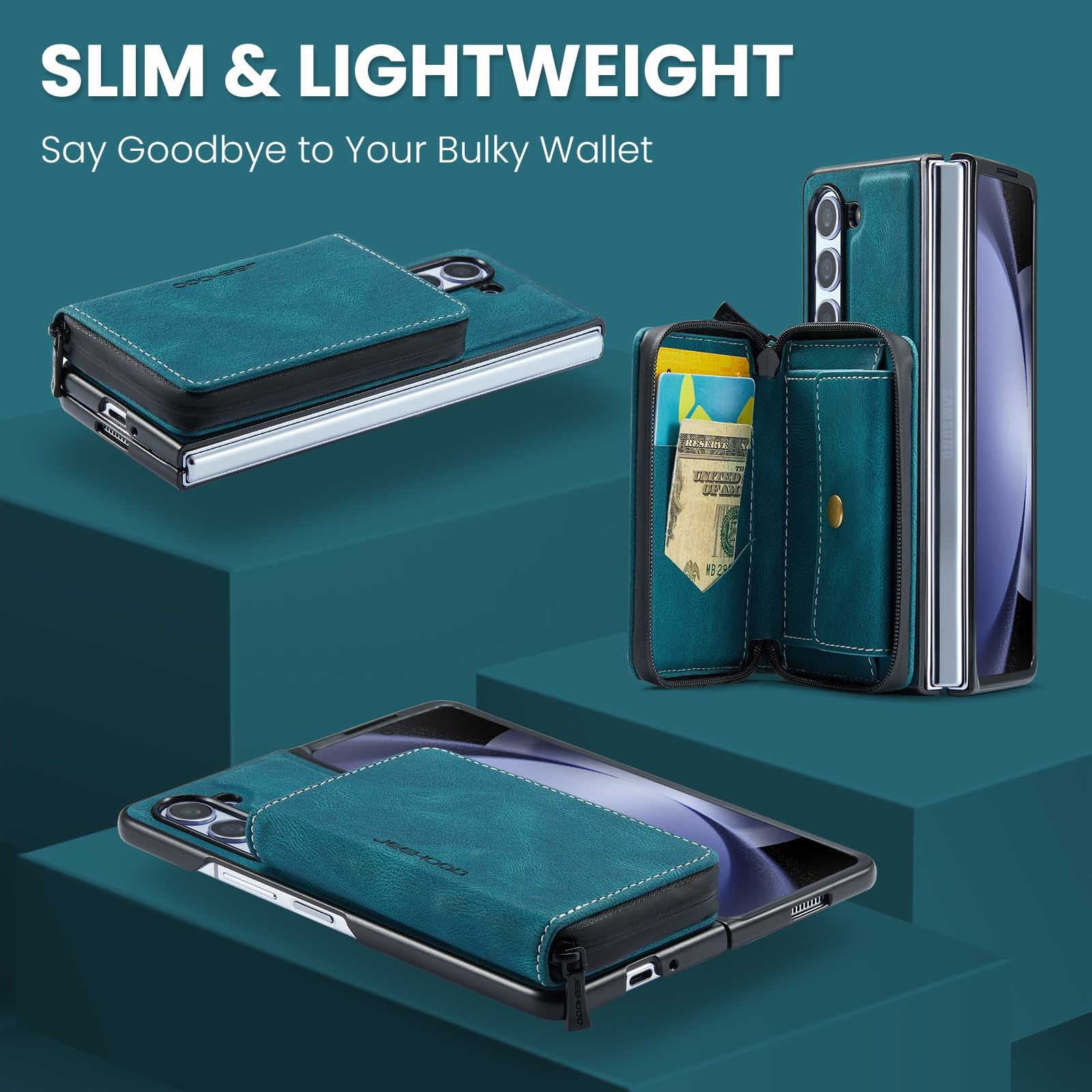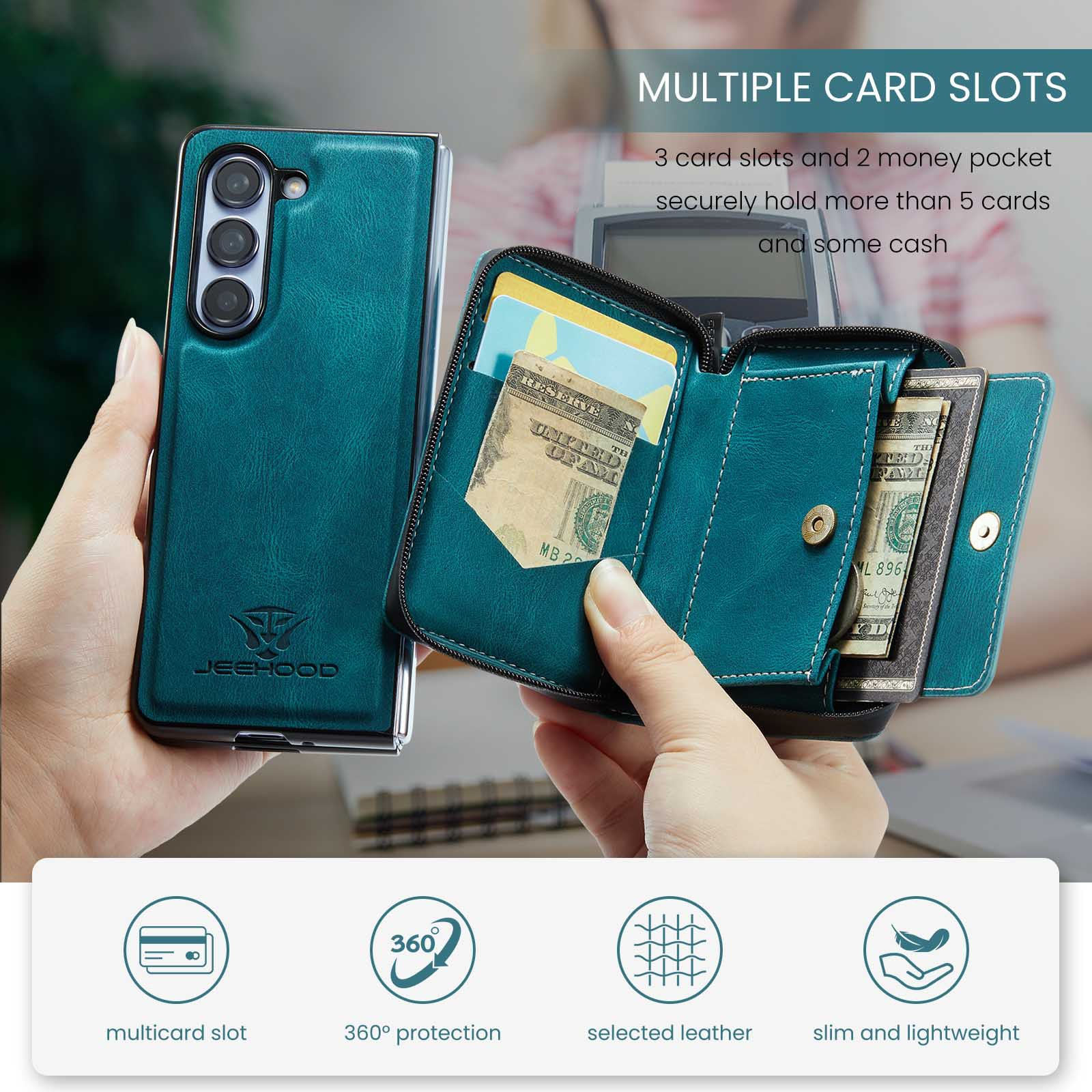 ✅【Wallet & Card Holder】This Samsung ZFold5 leather case with card holder provides 8 card slots to hold credit cards, ID cards, business cards, cash, bills. 2-in-1 Detachable Design: The slim case and wallet can be detached and combined by powerful magnetism, you can have both functions in 1 option, very unique and convenient to use.