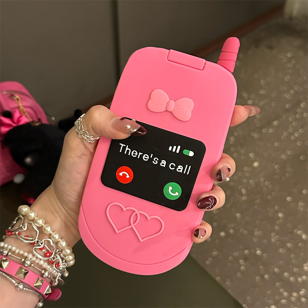 Cute 3D Hot Pink Flip Mirror Case For iPhone