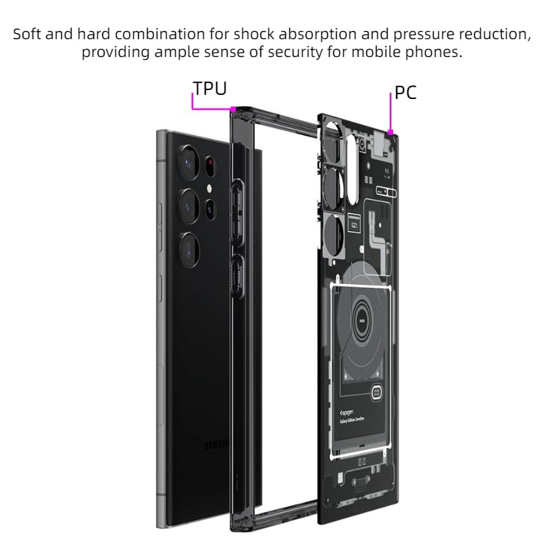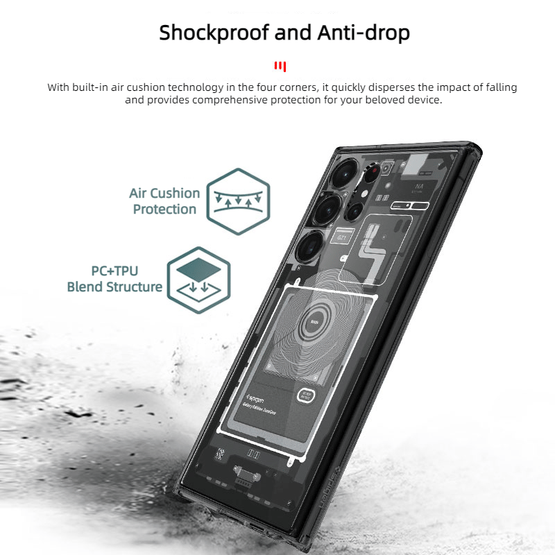To further protect your phone, the case offers Air Cushion technology, which uses a small air pocket to absorb any kind of impact, e.g. drops etc.