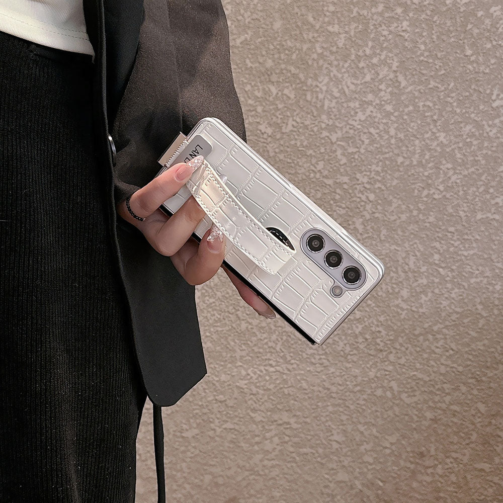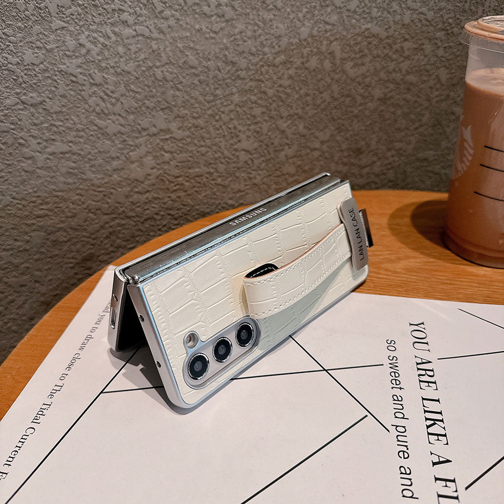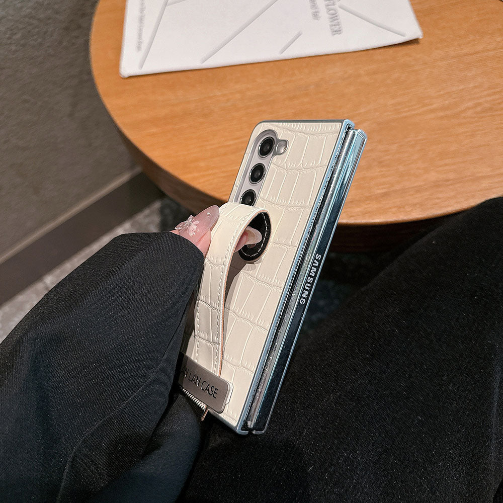 Crocodile Pattern Wristband Phone Case For Samsung Galaxy Z Fold